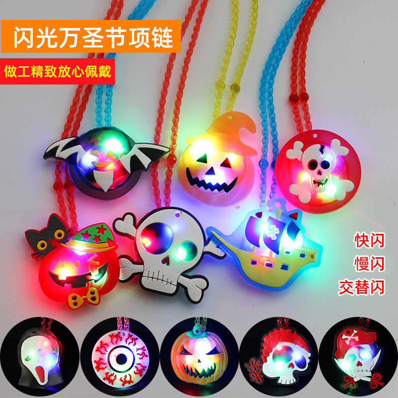 국경 아마존 새로운 할로윈 어린이 빛나는 목걸이 Led 플래시 호박 빛나는 유령 머리 펜던트 장난감스토어 가기