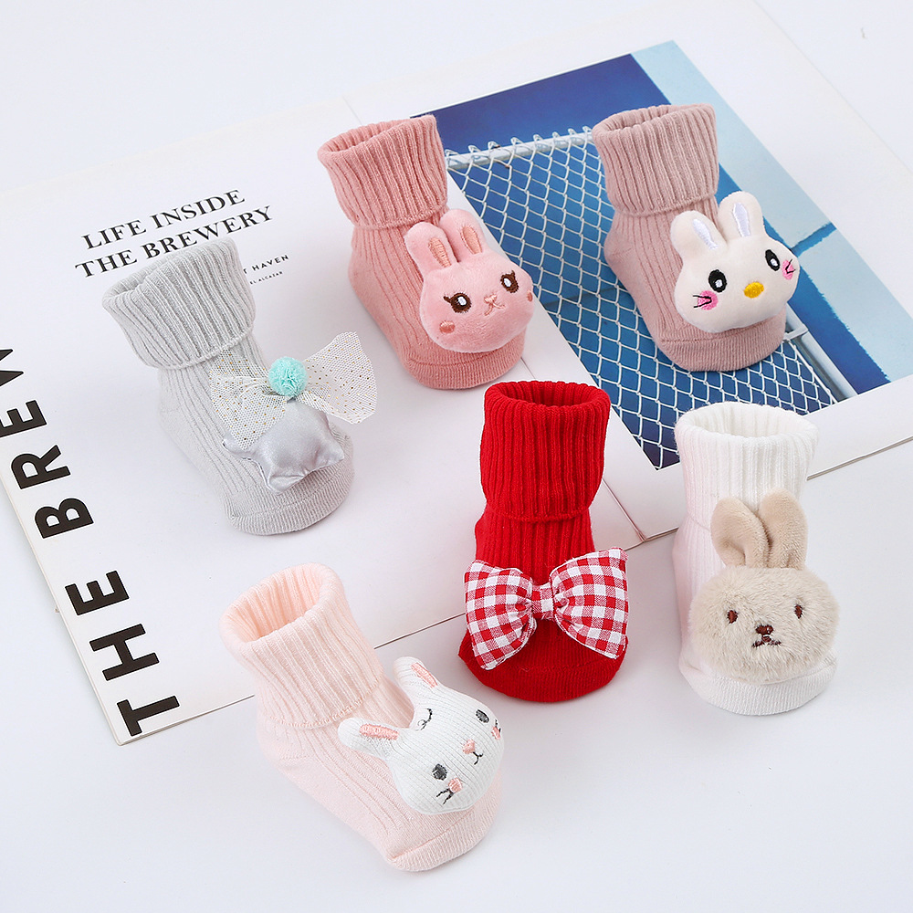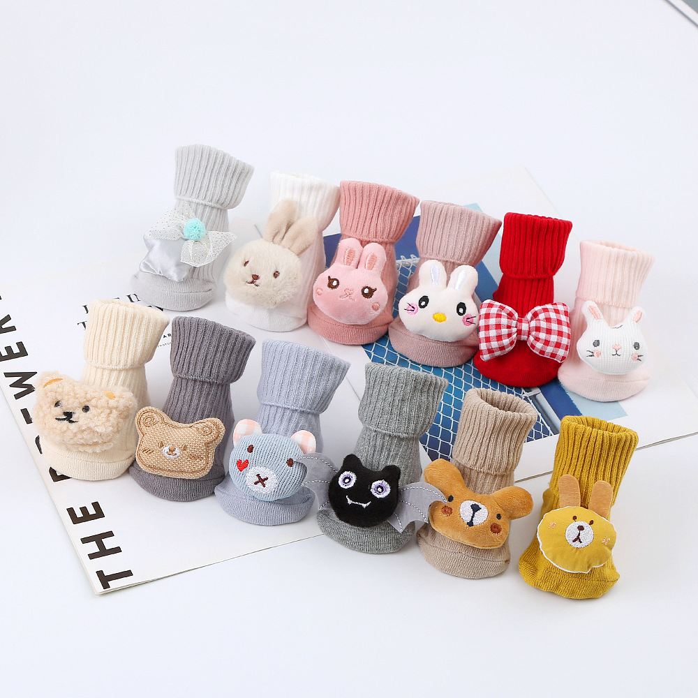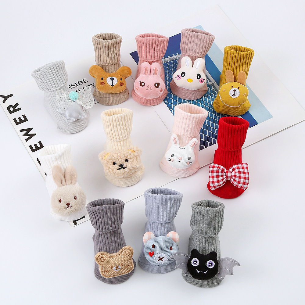 INS 더블 바늘 만화 아기 양말 0-1-3 세 접착제 미끄럼 방지 유아 양말 신생아 아기 중간 튜브 양말 비축 발스토어 가기