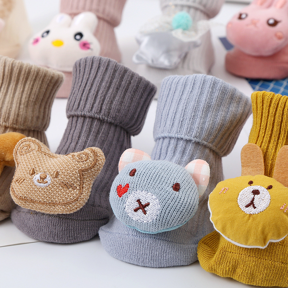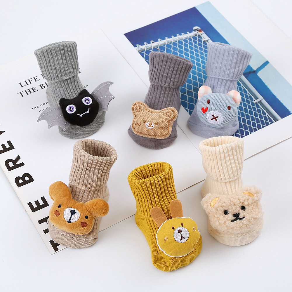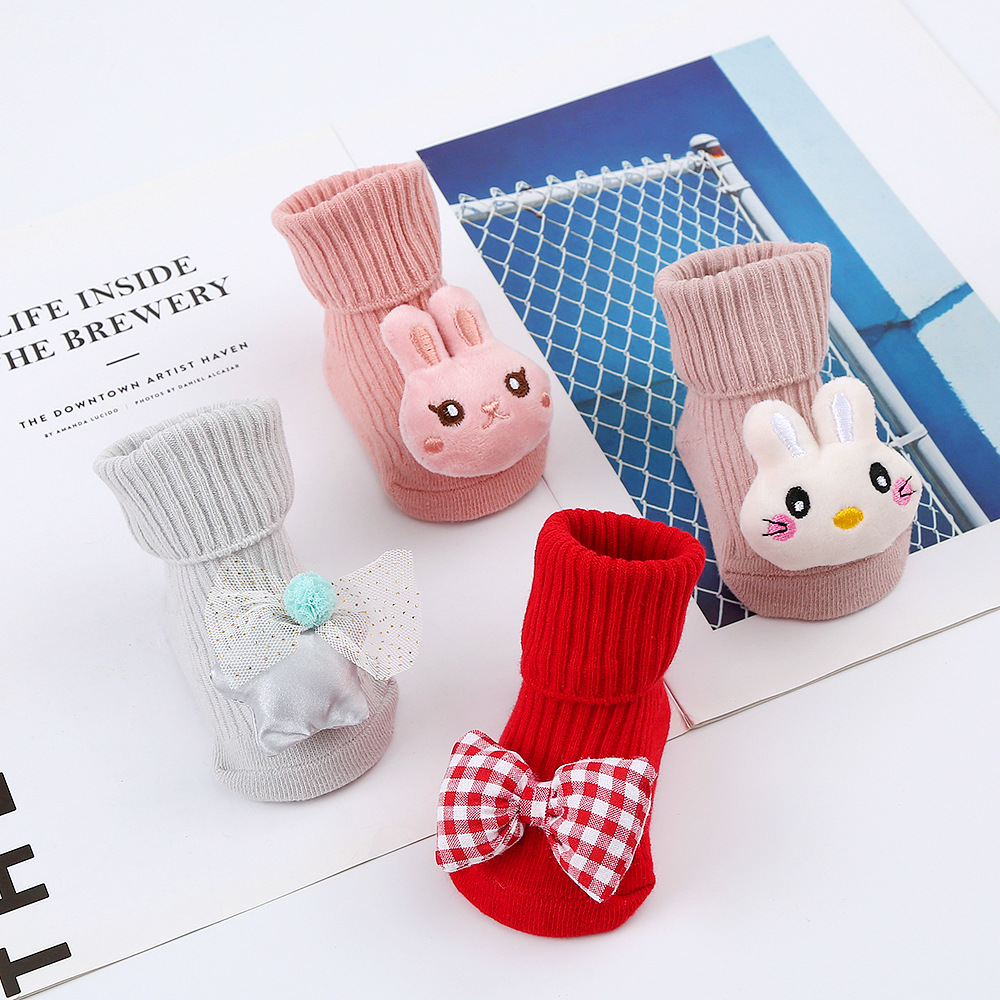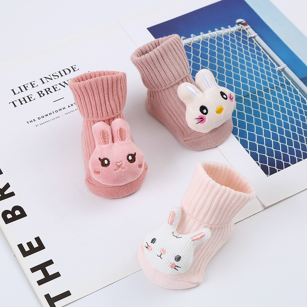 INS 더블 바늘 만화 아기 양말 0-1-3 세 접착제 미끄럼 방지 유아 양말 신생아 아기 중간 튜브 양말 비축 발스토어 가기