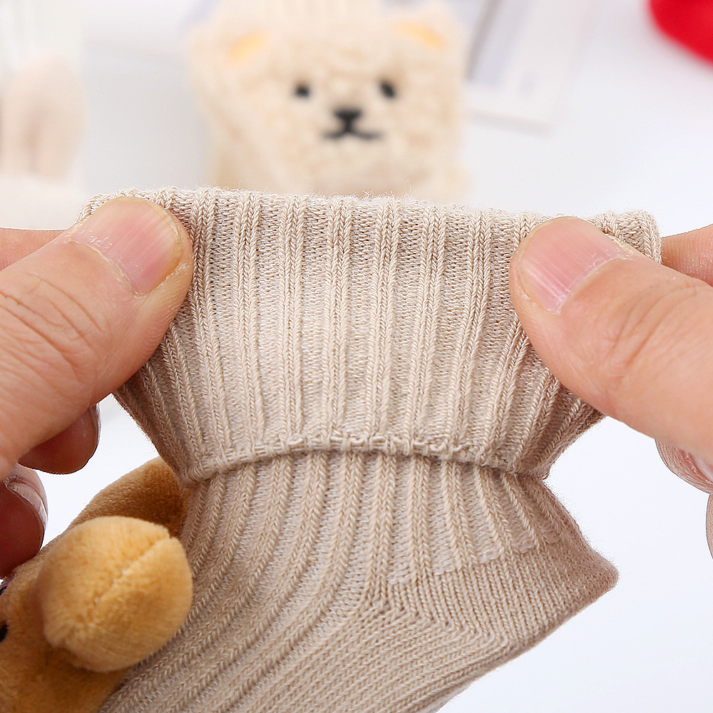 INS 더블 바늘 만화 아기 양말 0-1-3 세 접착제 미끄럼 방지 유아 양말 신생아 아기 중간 튜브 양말 비축 발