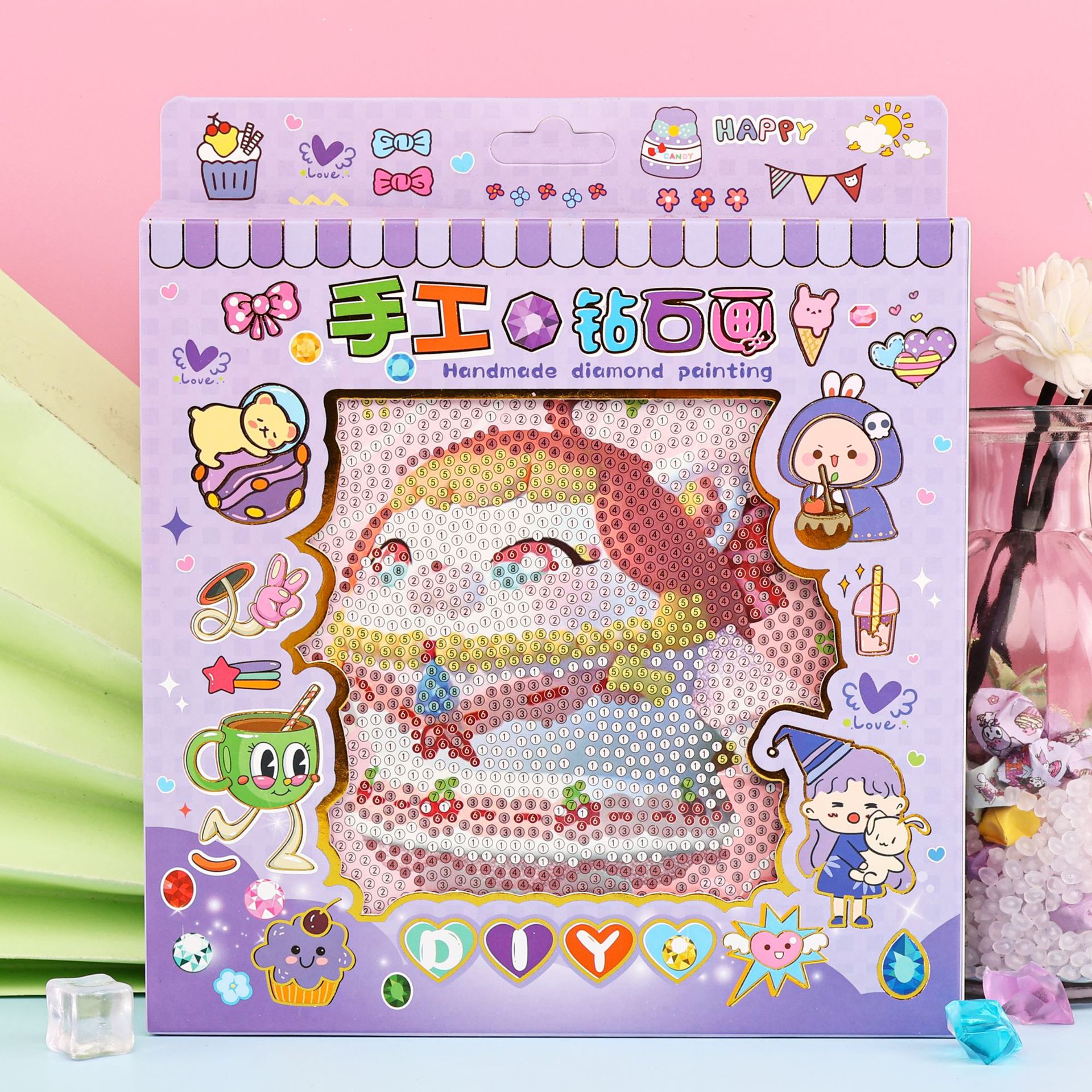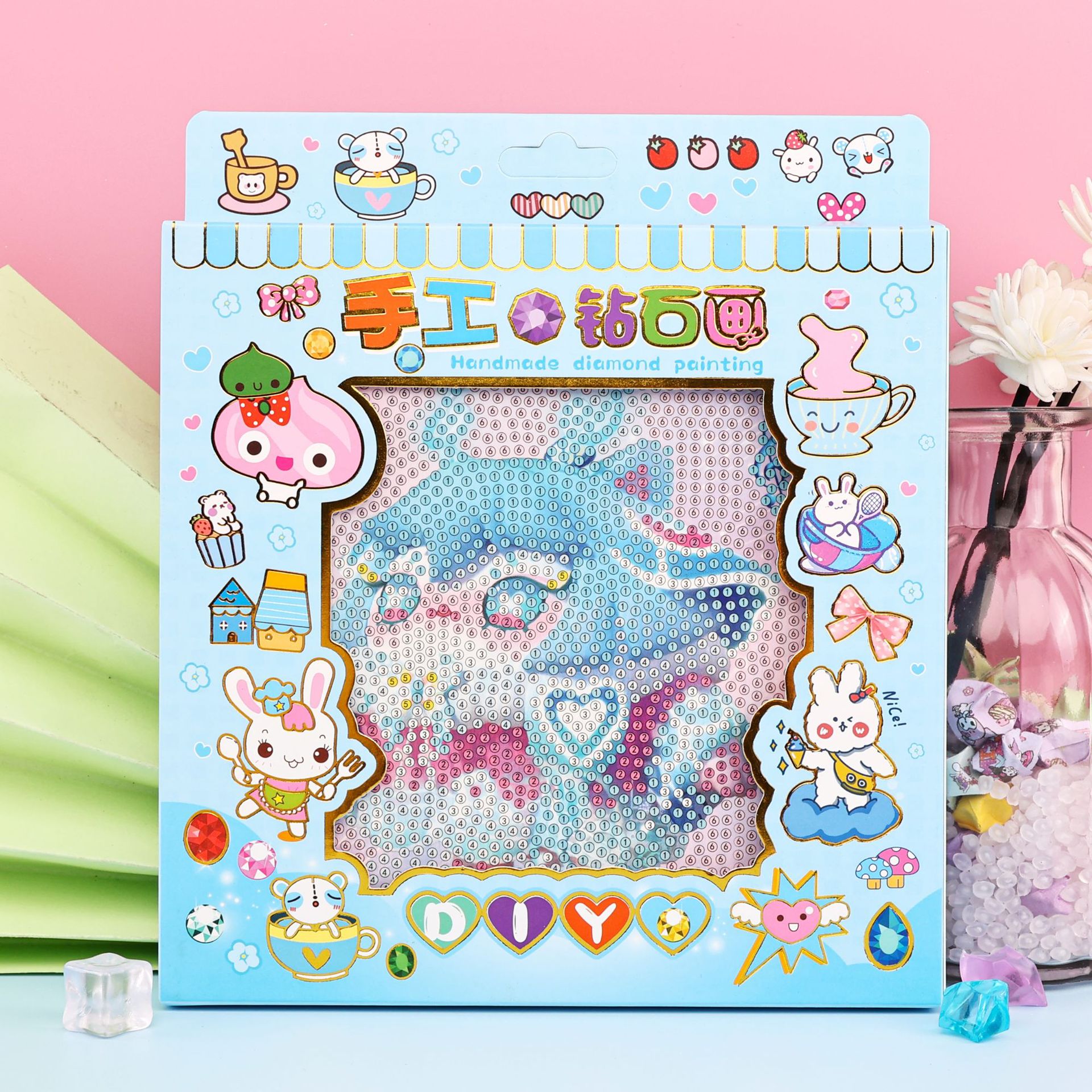 산리오 DIY 사진 프레임 다이아몬드 크리스탈 사진 프레임 어린이 다이아몬드 그림 세트 손 계란 소년 파티 다이아몬드 스티커스토어 가기