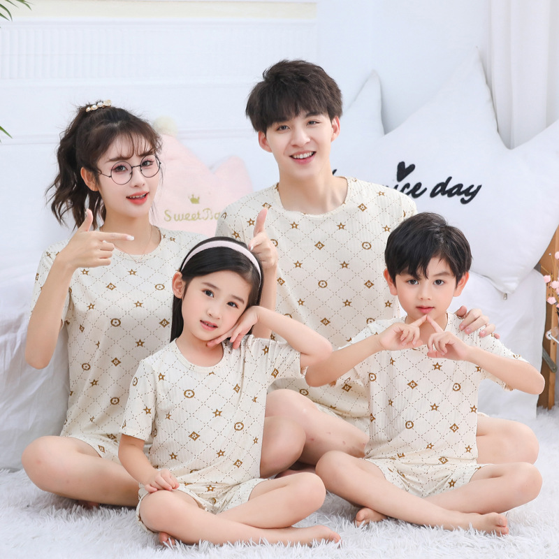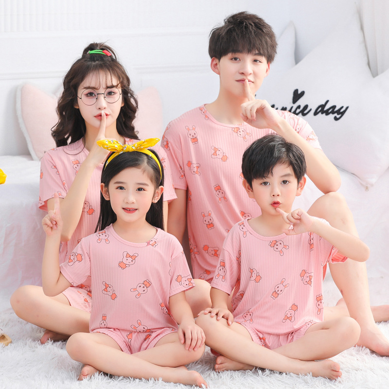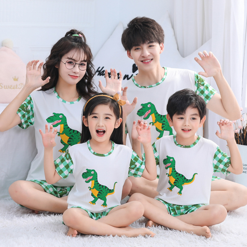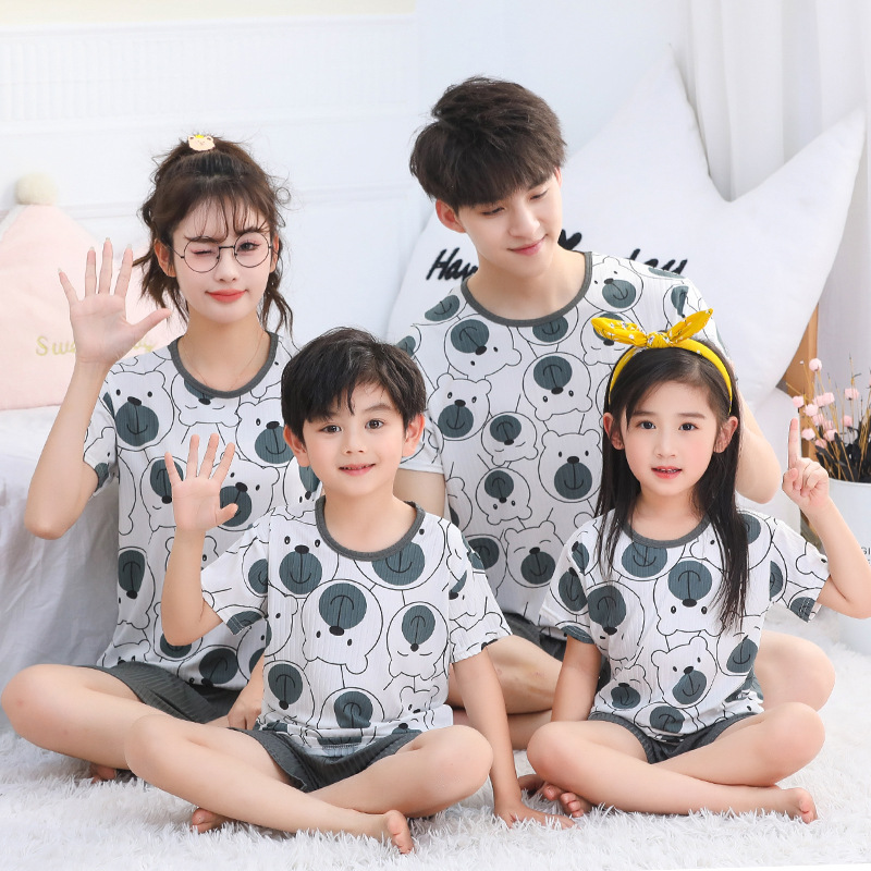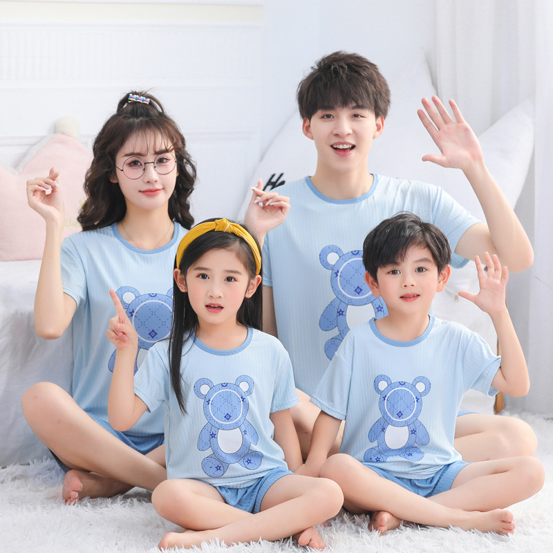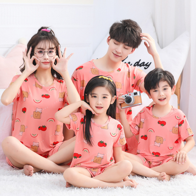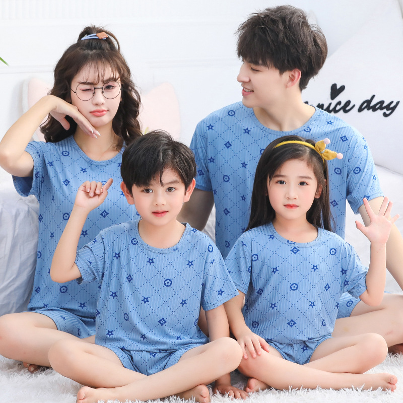 어린이 잠옷 여름 얼음 실크 반팔 반바지 소년 세트 소녀 여름 중형 및 대형 어린이 얇은 가정 의류 여름스토어 가기