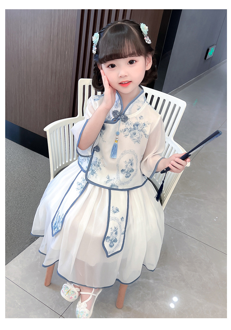 여자 중국 스타일 Hanfu 세트 여름 2023 새로운 크고 작은 어린이 골동품 버클 탑 하프 스커트스토어 가기