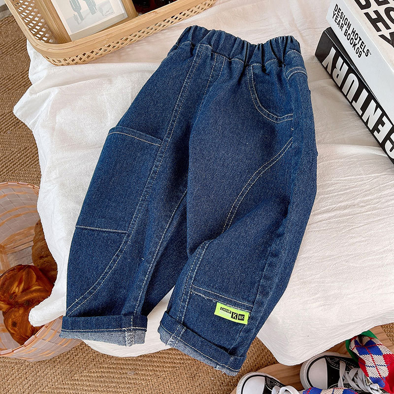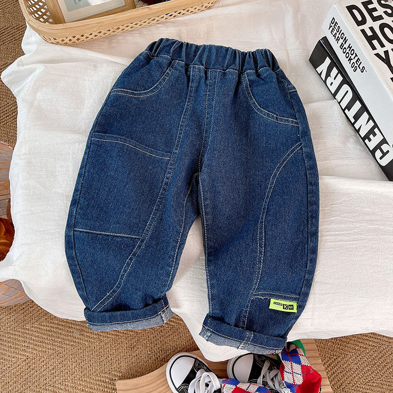소년 2025 새로운 봄 청바지 어린이 한국 스타일 표면 디자인 어린이 바지 아기 소년 봄 캐주얼 바지