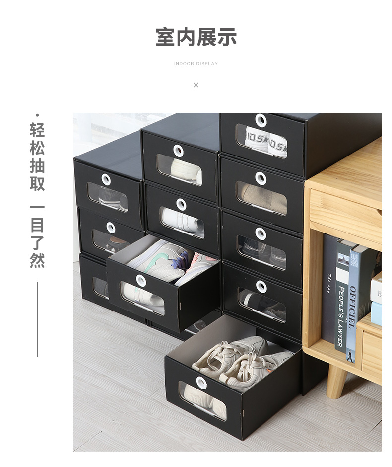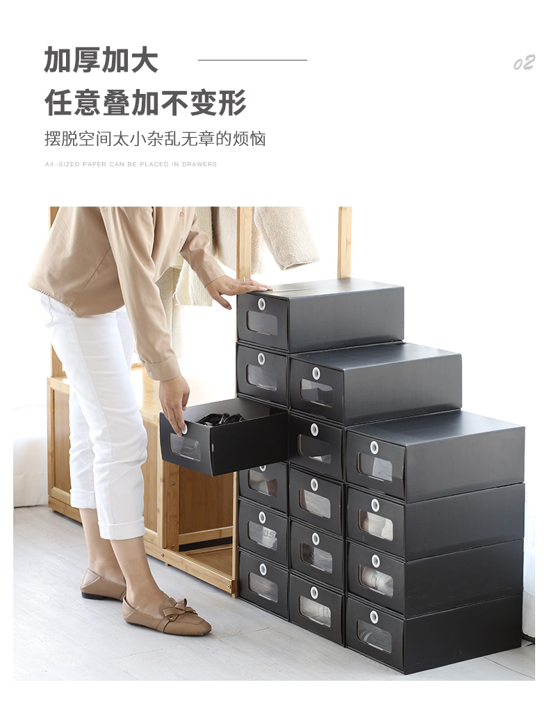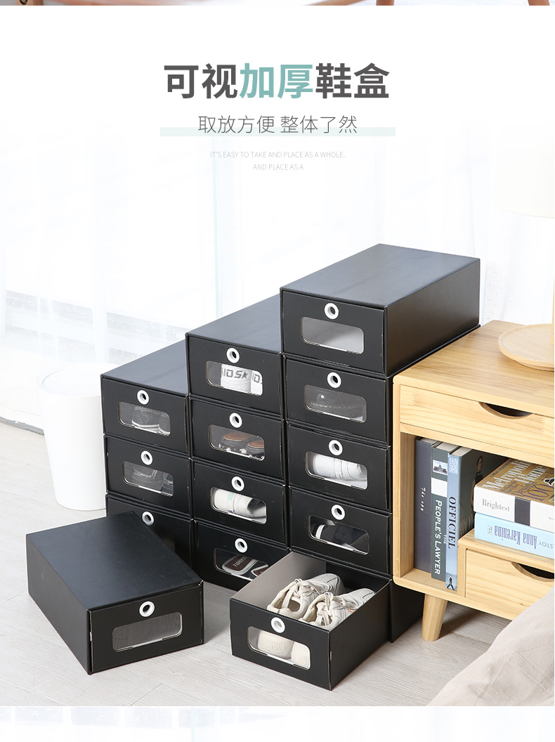 블랙 투명 신발 상자 방습 종이 상자 신발 보관함 서랍 신발장 공간 절약 종이 신발 상자 드로어블 신발장