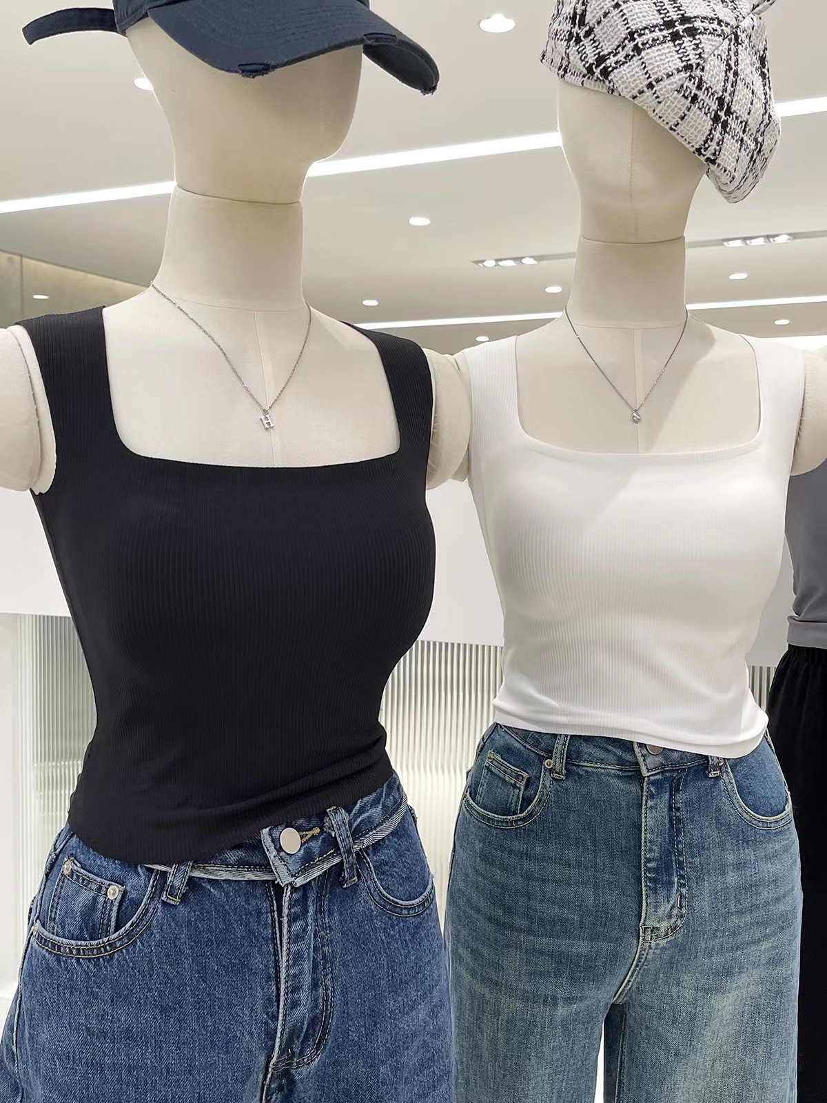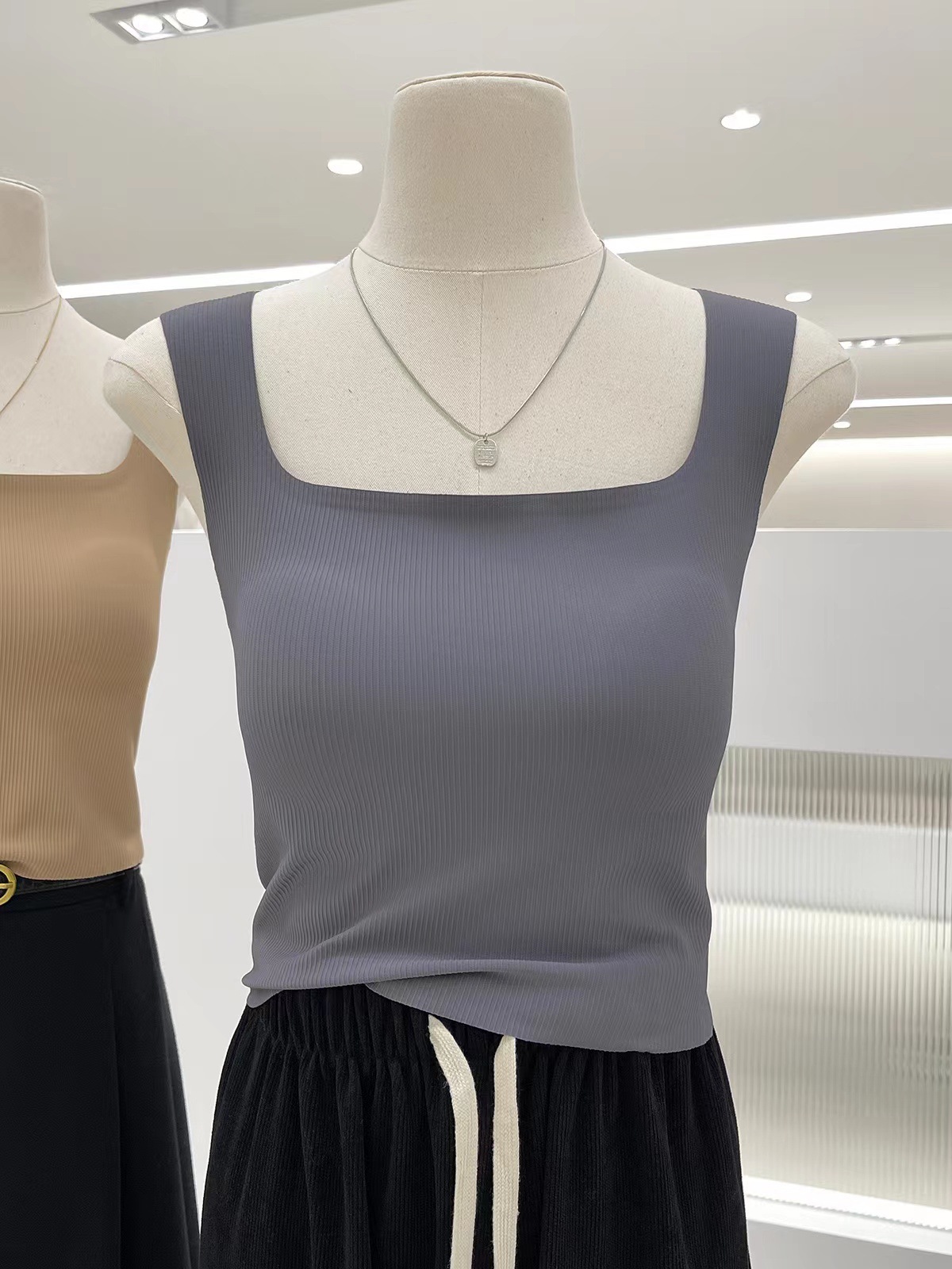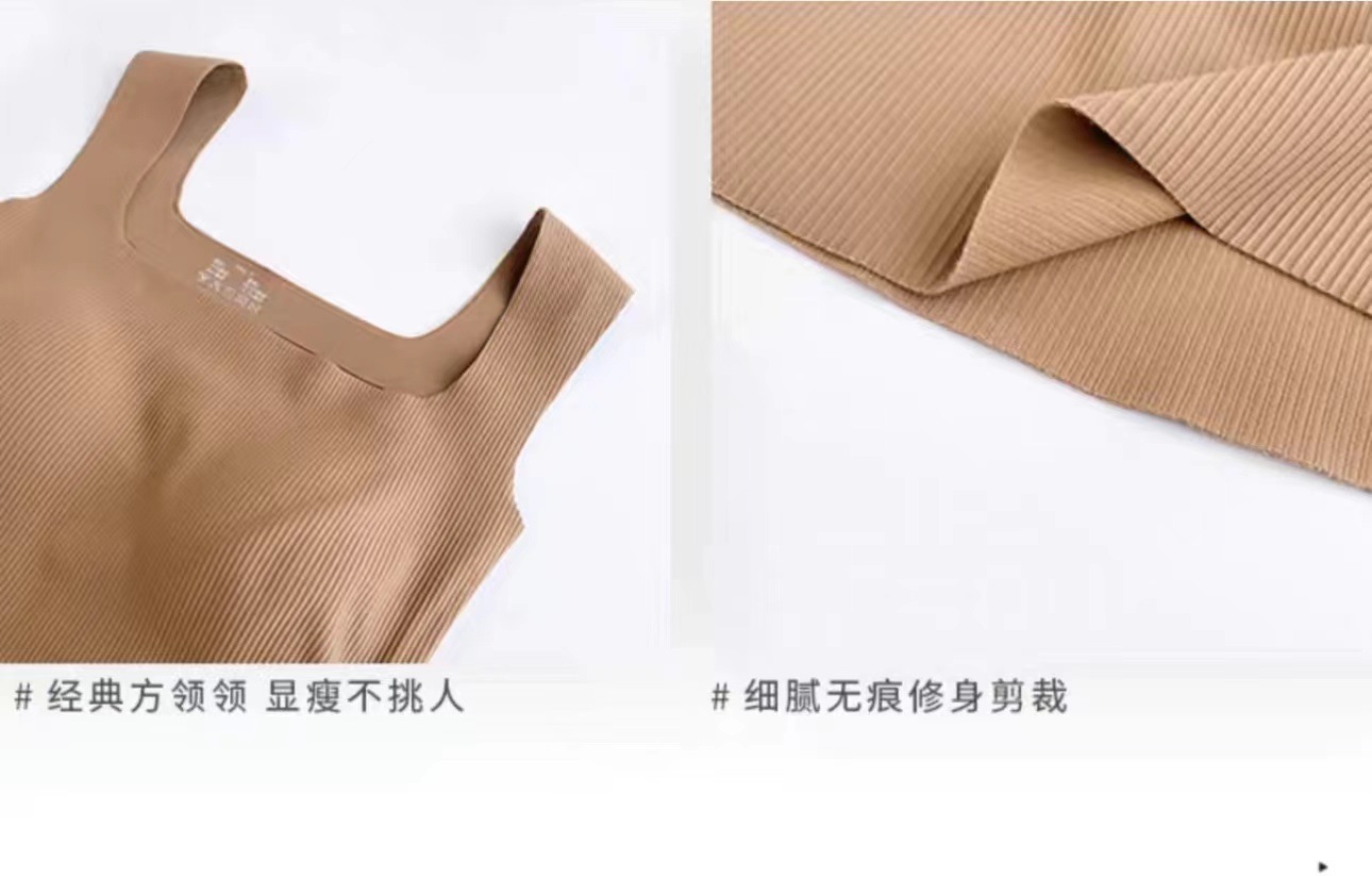 가슴 패드가 있는 여성용 실시간 스레드 아이스 실크 심리스 조끼, 스퀘어 넥, 슬리밍, 외부 착용, 여성용 다용도 및 편안한 튜브 탑스토어 가기