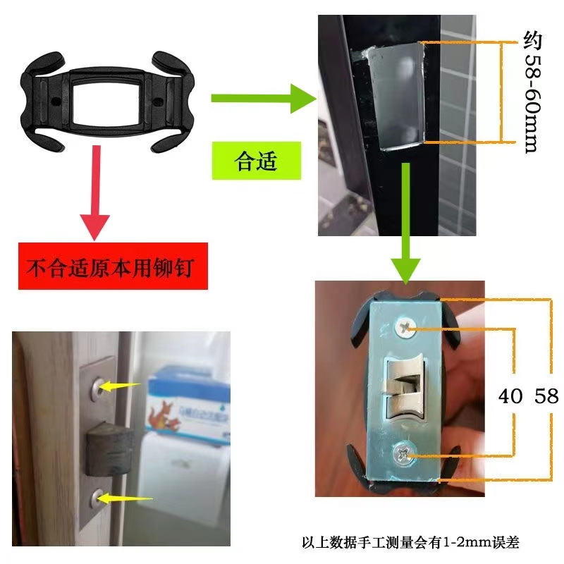 화장실 알루미늄 합금 도어록 실린더 잠금 혀 각도 코드 유리 도어 나사 고정베이스 접착제스토어 가기