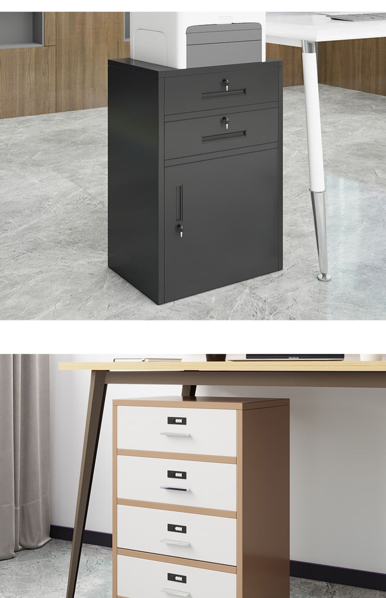 사무실 책상 하단 캐비닛 강철 이동식 캐비닛 보관 캐비닛 잠금 장치가있는 철 낮은 캐비닛 서랍 이동식 작은 캐비닛