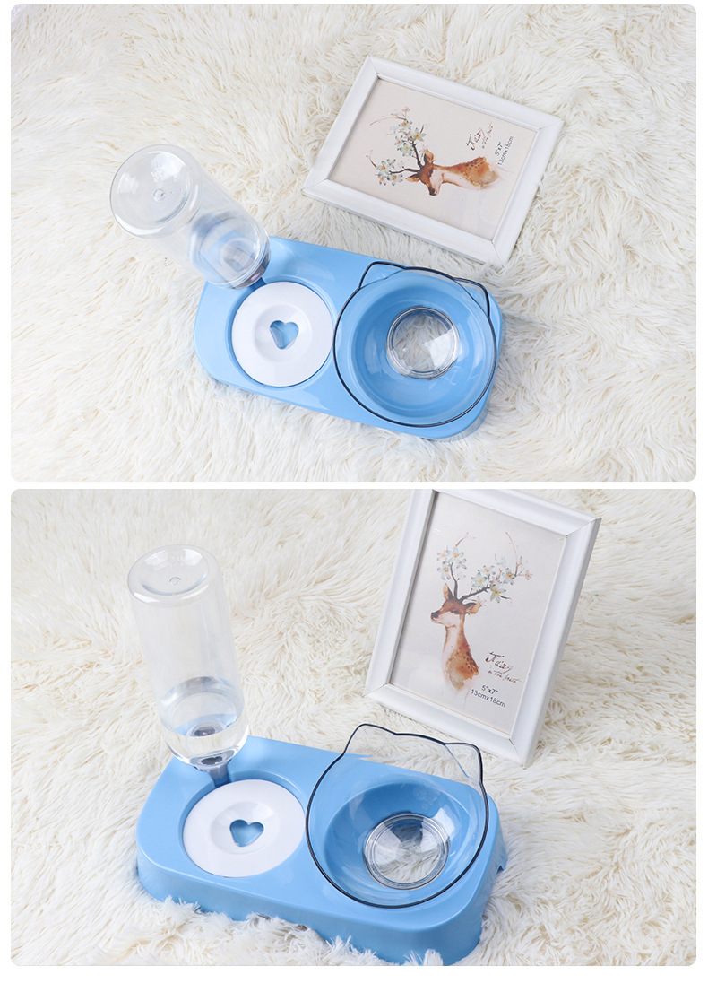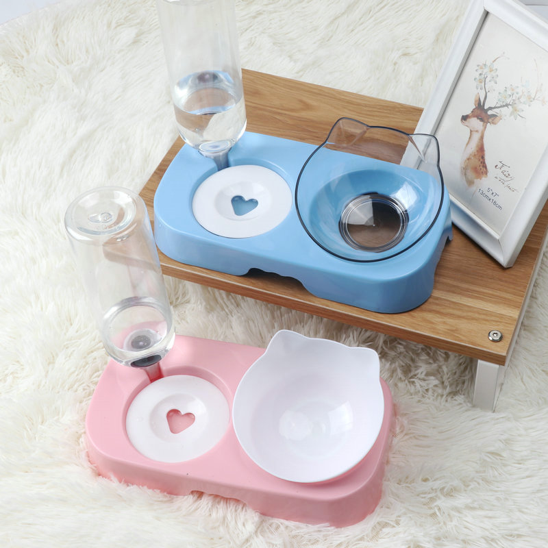 도매 피더 목 보호 더블 그릇 고양이 그릇 개 그릇 PP 플라스틱 자동 마시는 애완 동물 그릇 애완 동물 마시는 물 유물
