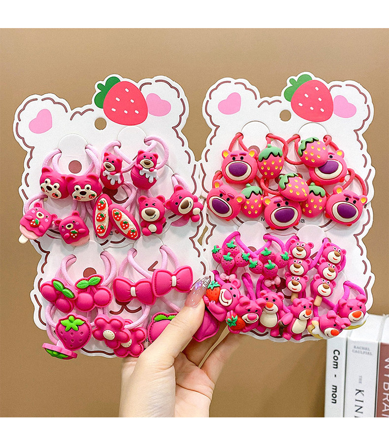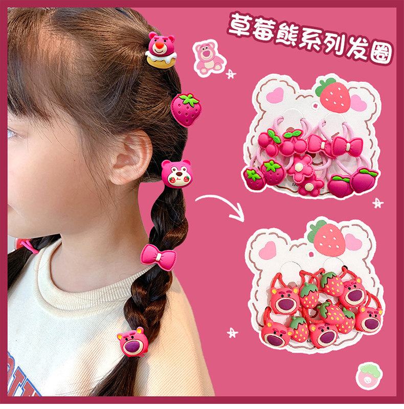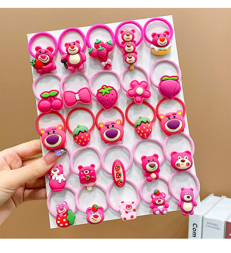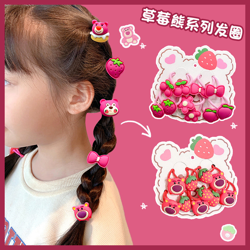 슈퍼 귀여운 딸기 곰 고무 밴드 소녀의 헤어 액세서리는 머리카락을 다치게하지 않습니다 높은 탄성 헤어 밴드 아기 소녀를위한 어린이 헤어 로프 머리 장식
