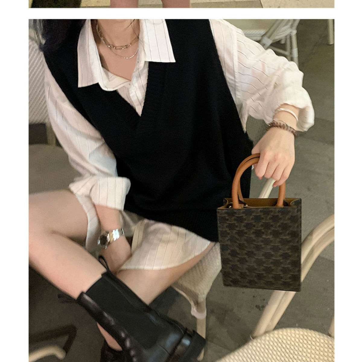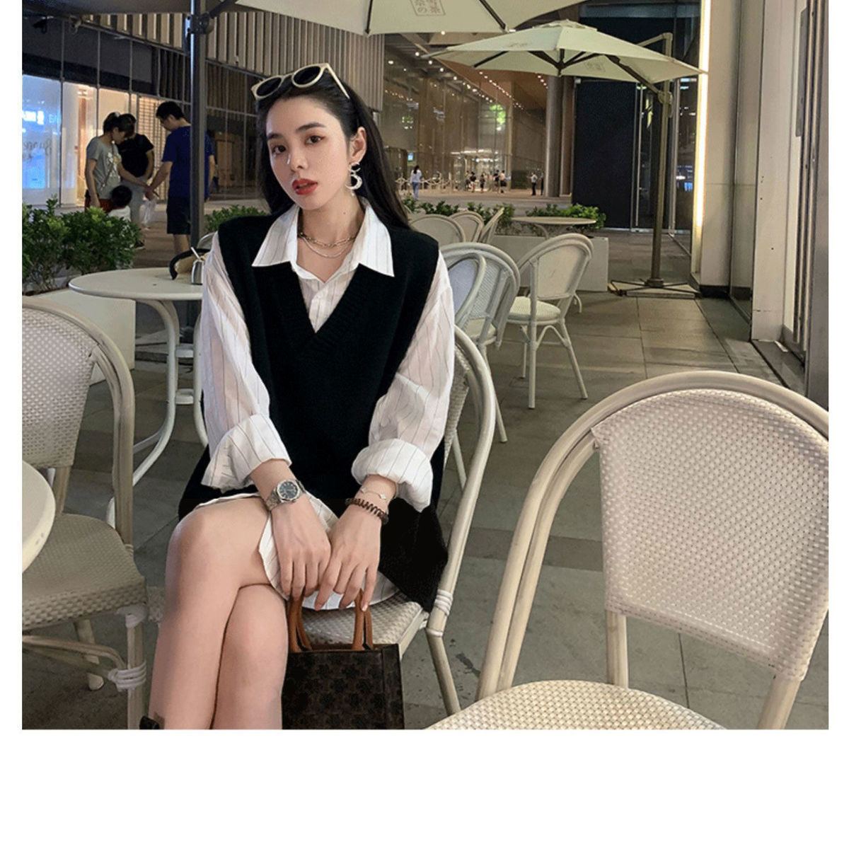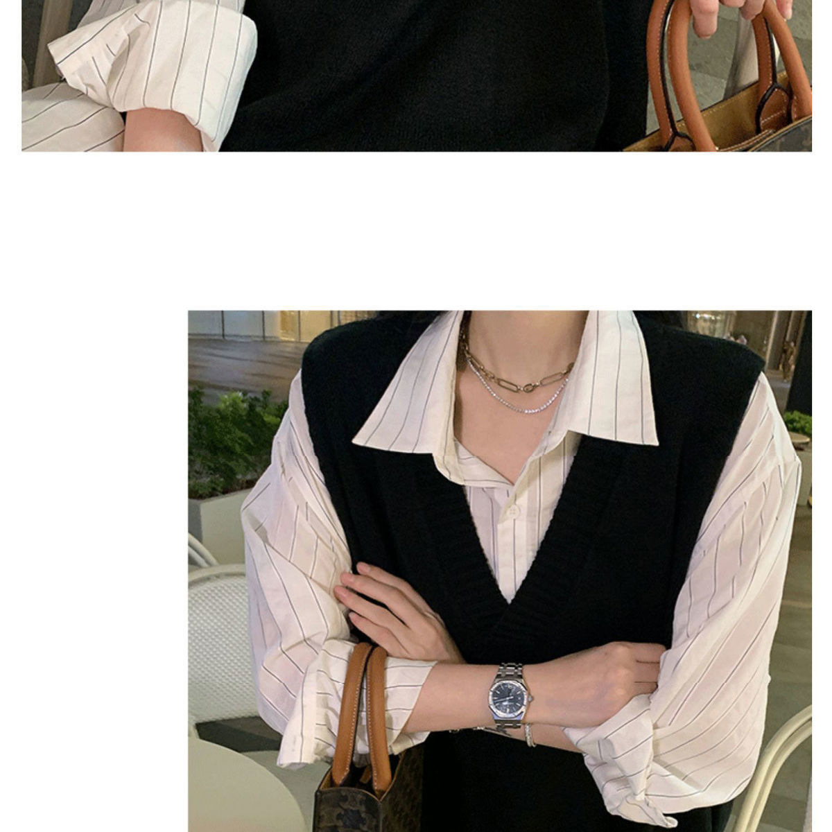 V넥 슬릿 니트 조끼 여성용 봄 가을 신상 루즈핏 스웨터 아우터 한국 스타일 조끼 탑 트렌디 이너웨어스토어 가기