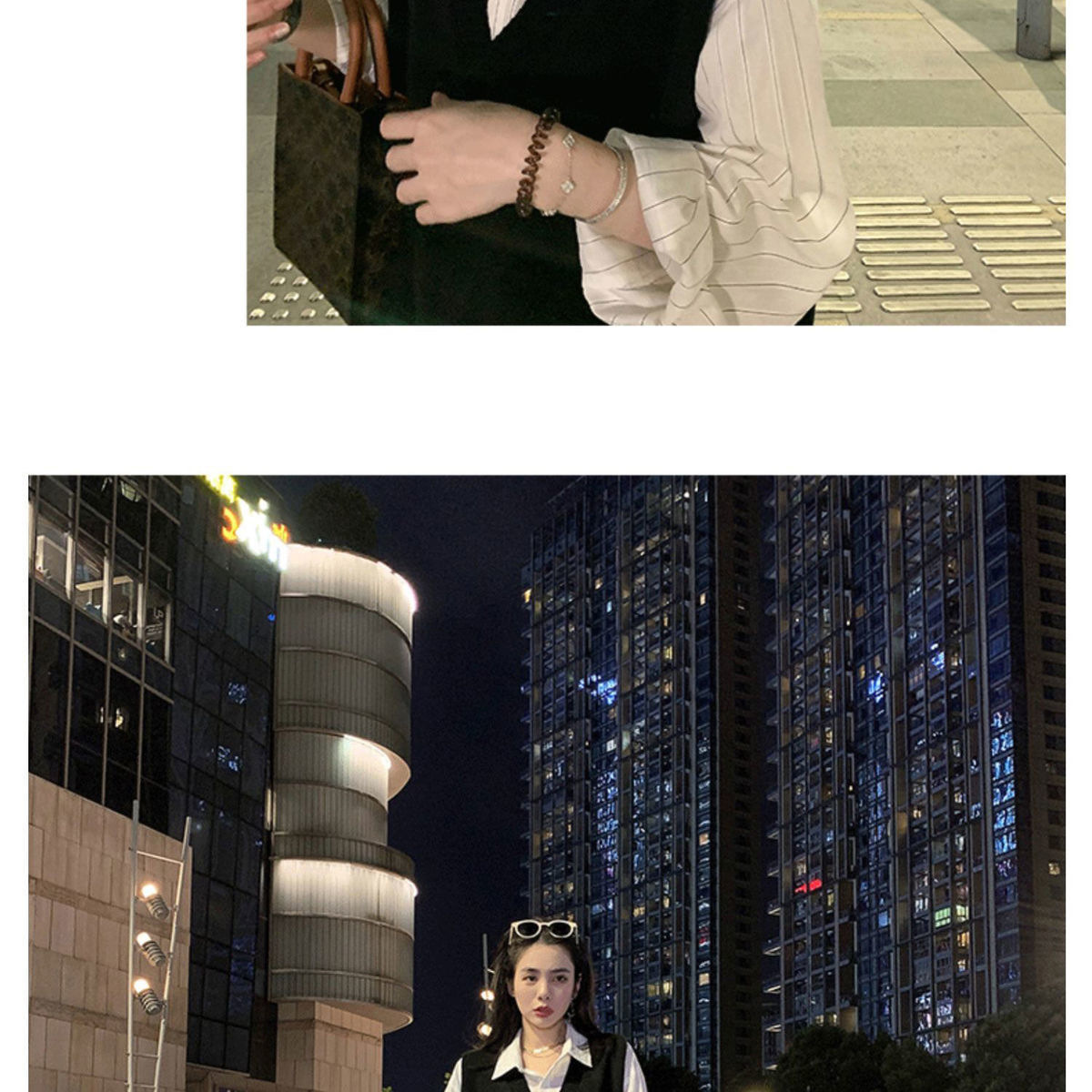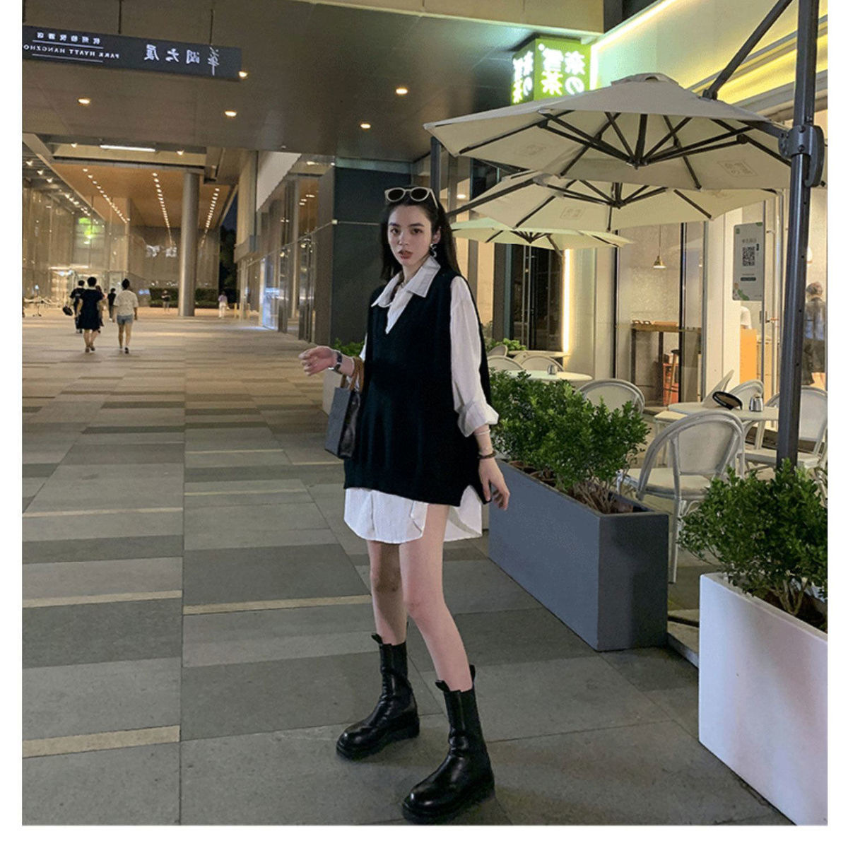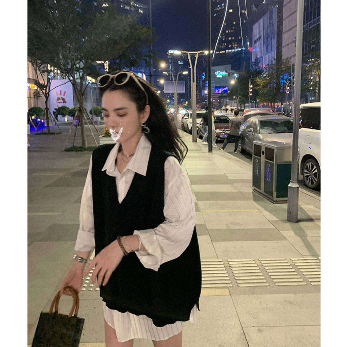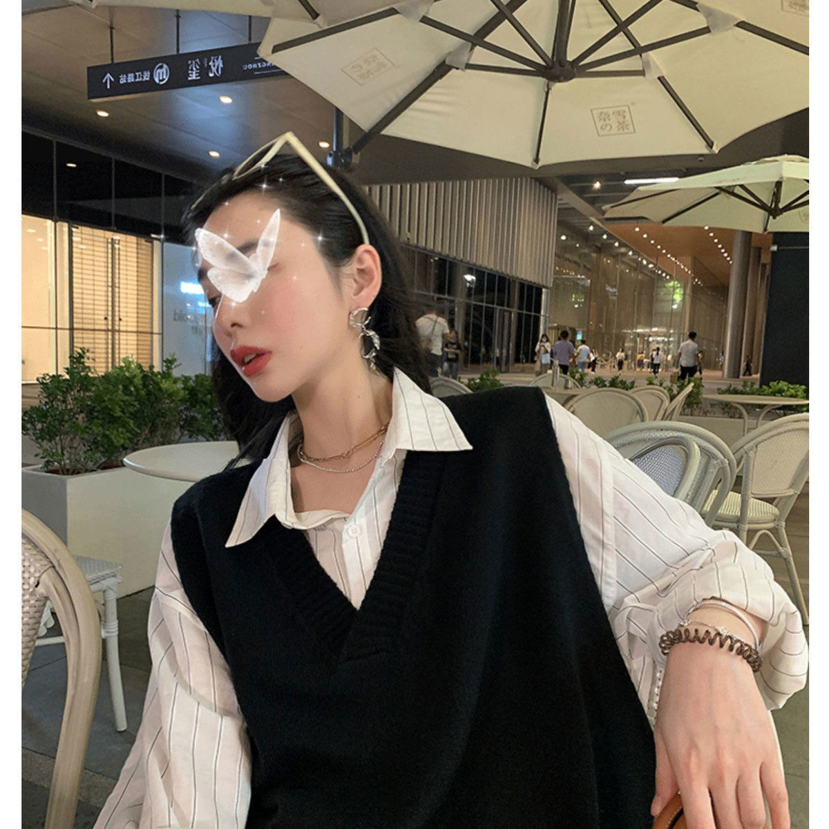 V넥 슬릿 니트 조끼 여성용 봄 가을 신상 루즈핏 스웨터 아우터 한국 스타일 조끼 탑 트렌디 이너웨어스토어 가기