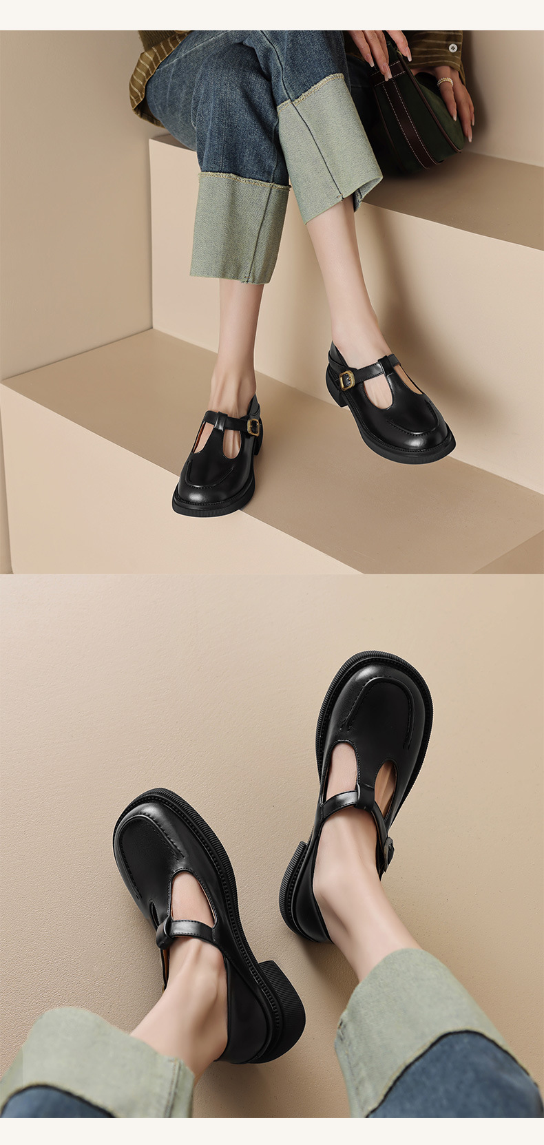 32-43 사이즈 신발 레트로 라운드 토 메리 제인 신발 T 자형 버클 신발 여성용 봄과 가을 낮은 굽 대외 무역 여성 신발스토어 가기