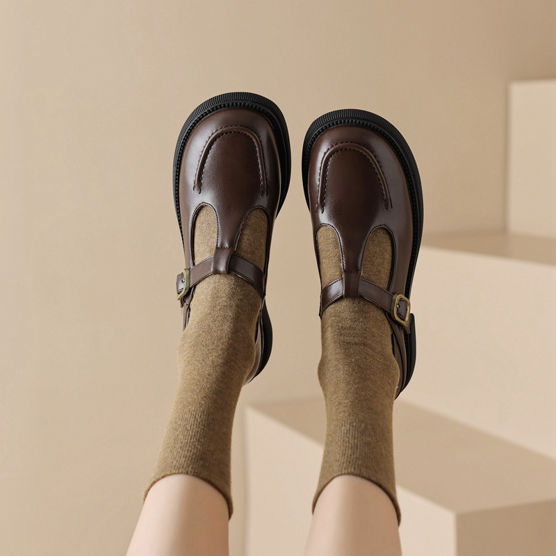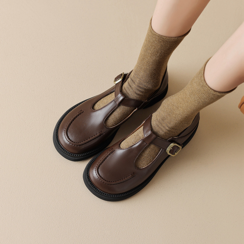 32-43 사이즈 신발 레트로 라운드 토 메리 제인 신발 T 자형 버클 신발 여성용 봄과 가을 낮은 굽 대외 무역 여성 신발