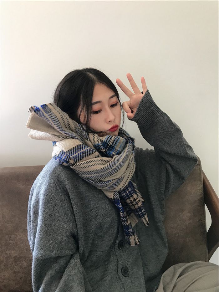 한국 스타일 여성의 가을과 겨울 두꺼운 스카프 일본식 모든 일치 학생 격자 무늬 숄 대형 긴 따뜻한 모조 캐시미어 스카프스토어 가기