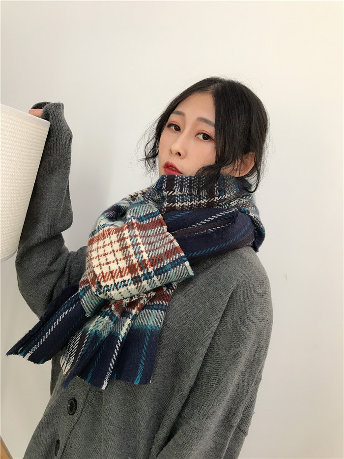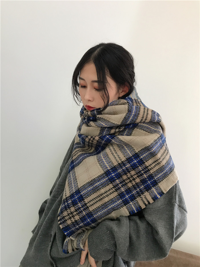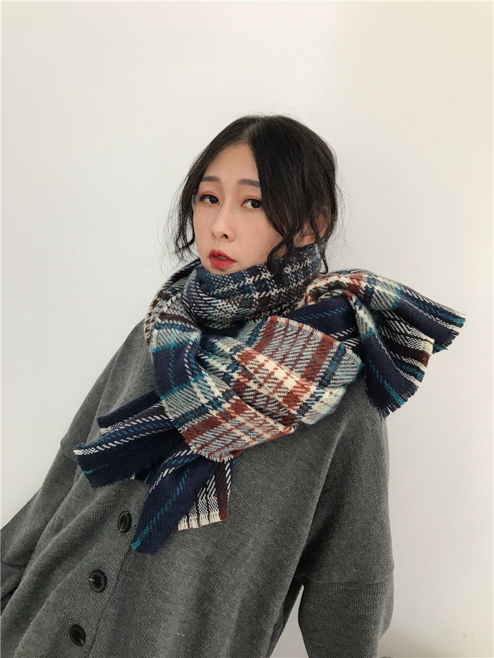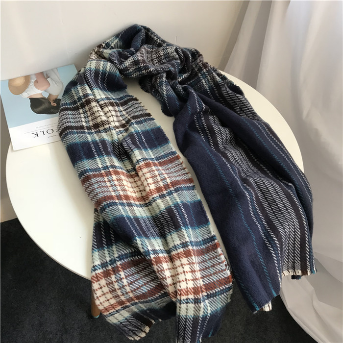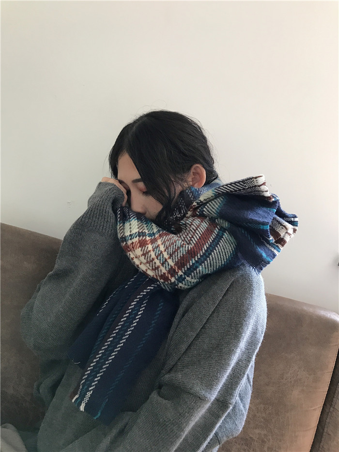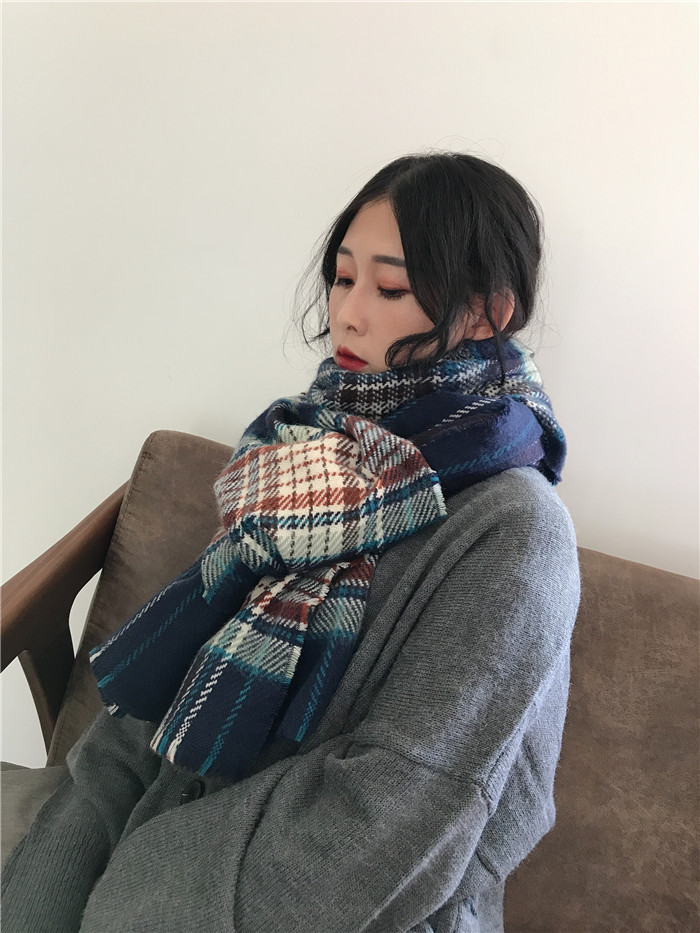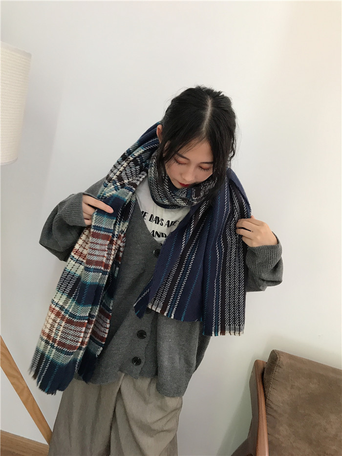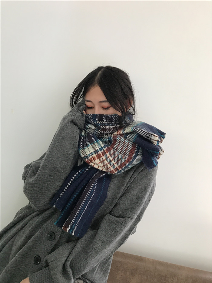 한국 스타일 여성의 가을과 겨울 두꺼운 스카프 일본식 모든 일치 학생 격자 무늬 숄 대형 긴 따뜻한 모조 캐시미어 스카프