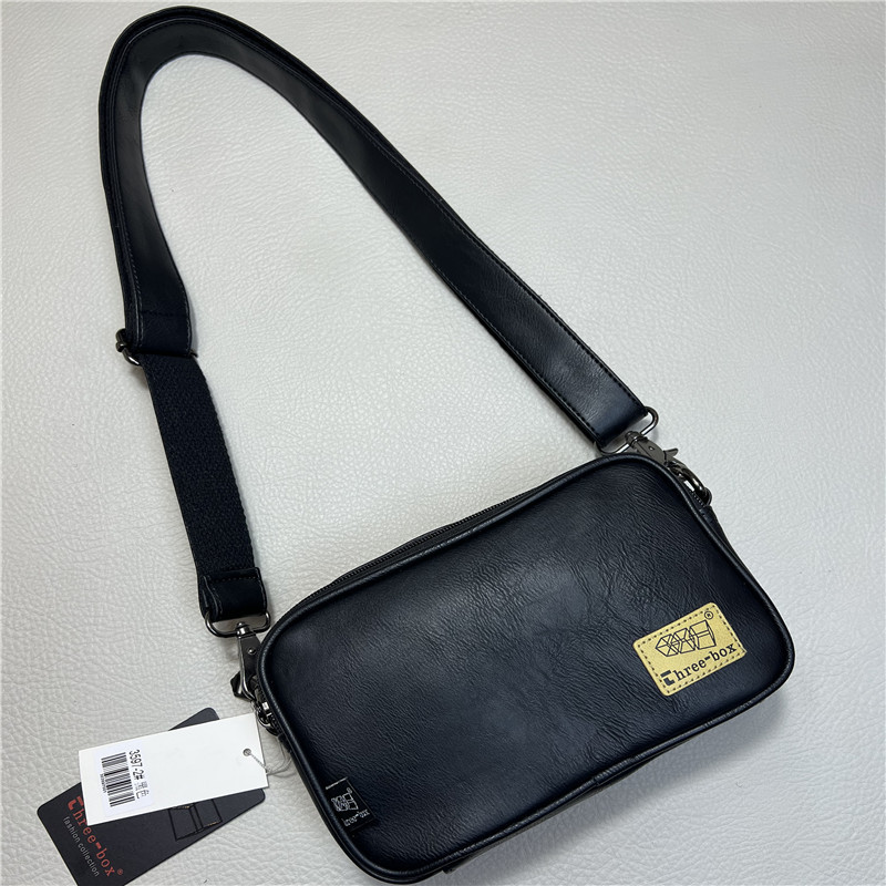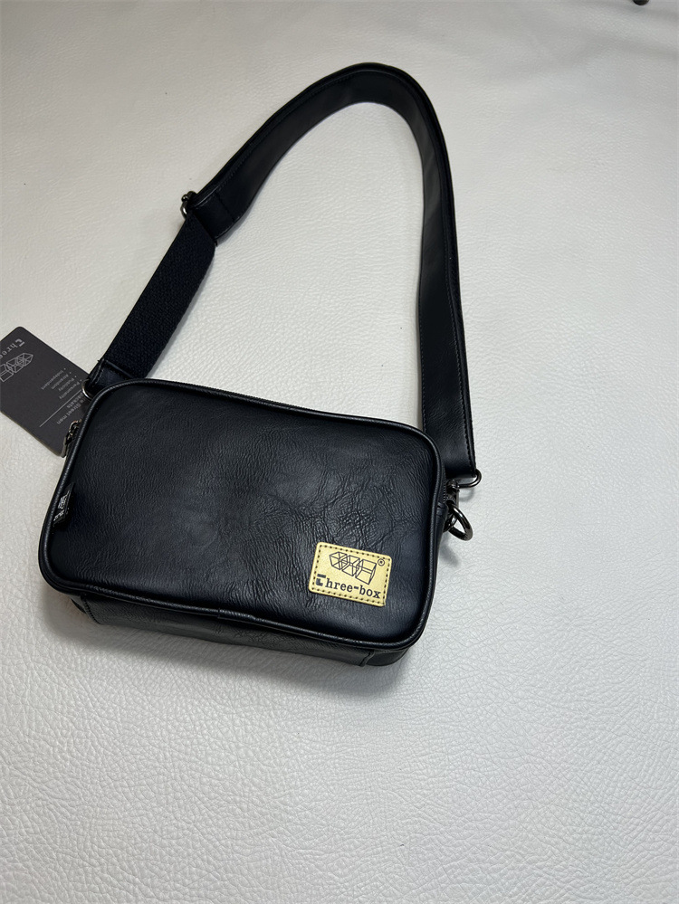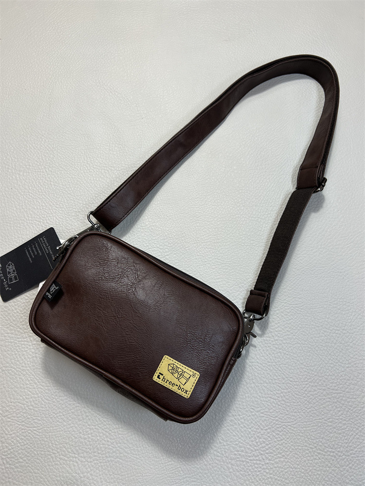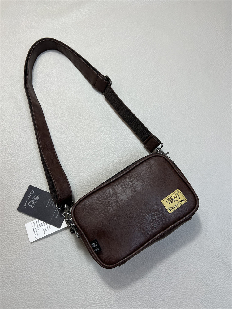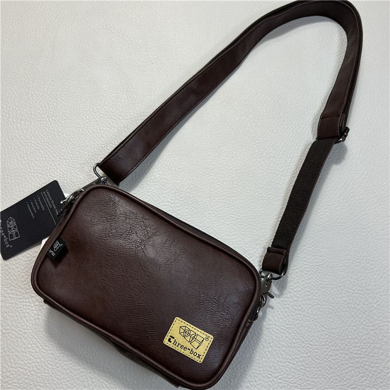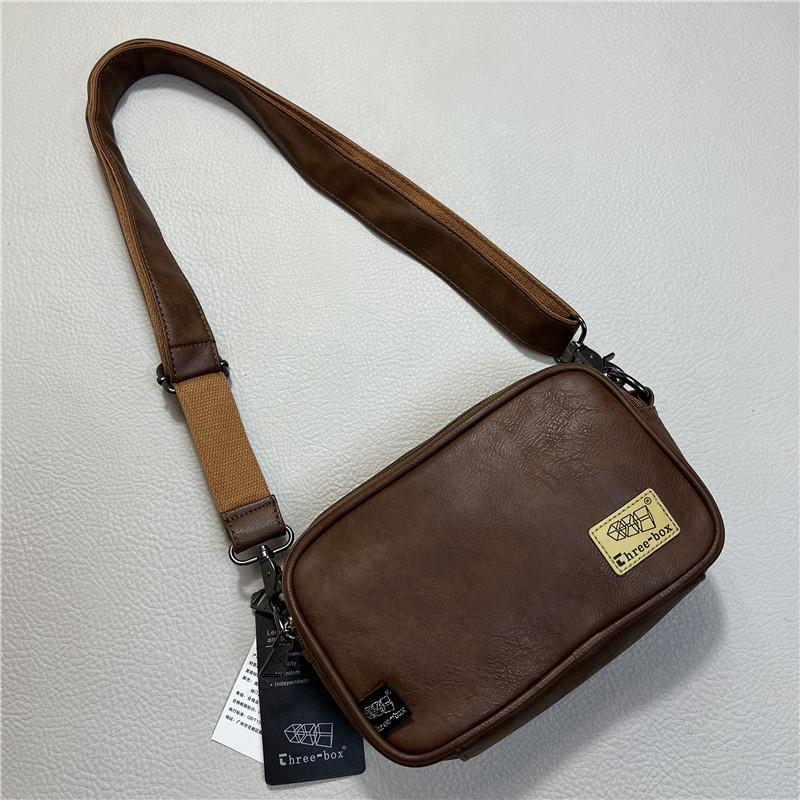 쓰리박스 한국식 부드러운 가죽 크로스바디 백팩 일본과 한국식 크로스바디 지퍼 남성용 가방 단색 캐주얼 트렌디 남성 숄더백스토어 가기