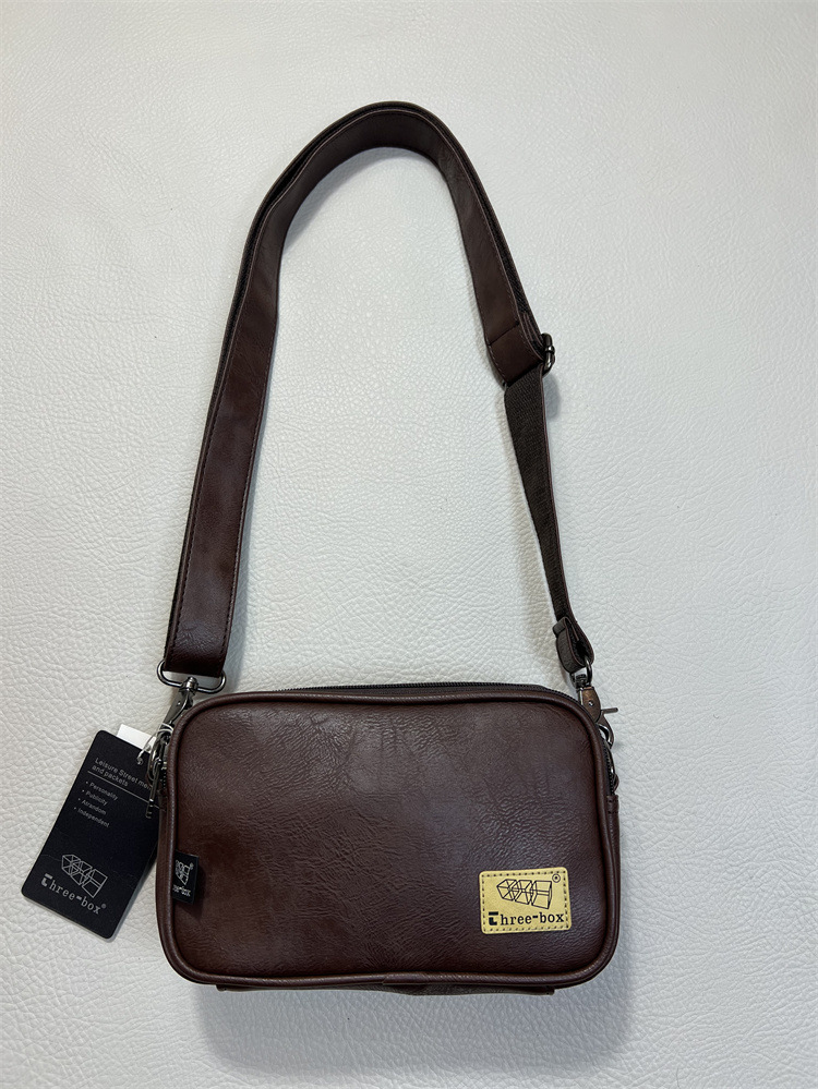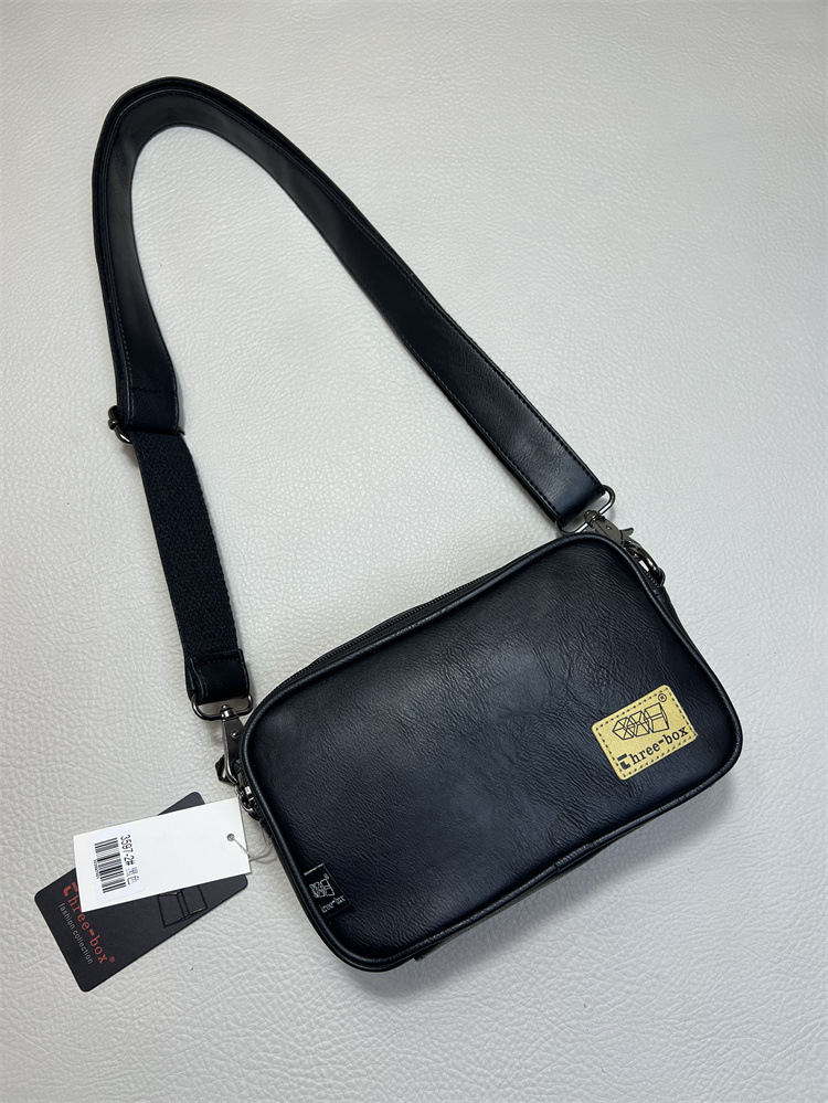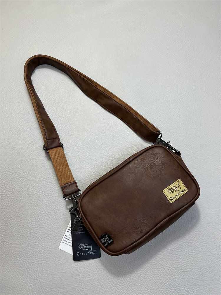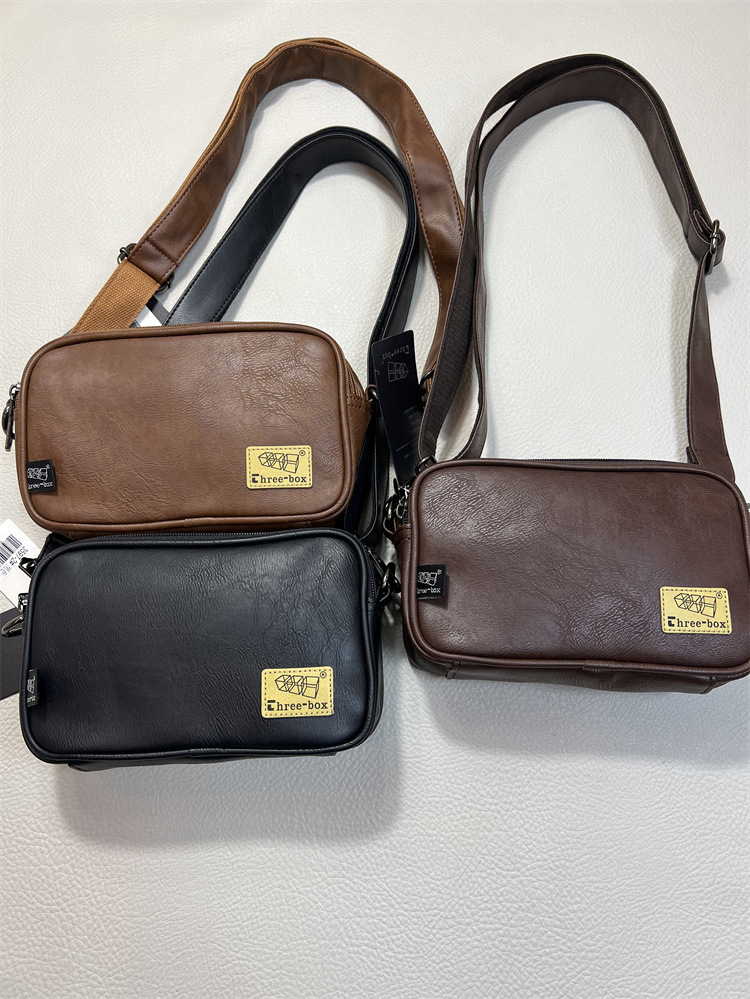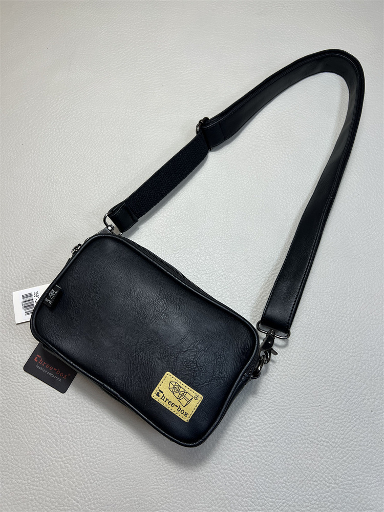 쓰리박스 한국식 부드러운 가죽 크로스바디 백팩 일본과 한국식 크로스바디 지퍼 남성용 가방 단색 캐주얼 트렌디 남성 숄더백스토어 가기