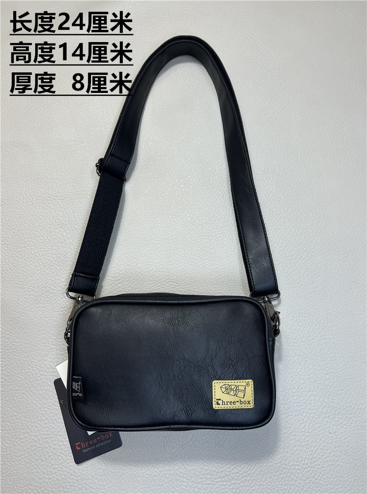 threebox韩版软皮斜挎背包日韩斜跨拉链男包纯色休闲潮男单肩小包