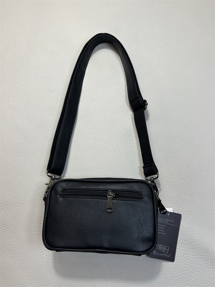 쓰리박스 한국식 부드러운 가죽 크로스바디 백팩 일본과 한국식 크로스바디 지퍼 남성용 가방 단색 캐주얼 트렌디 남성 숄더백