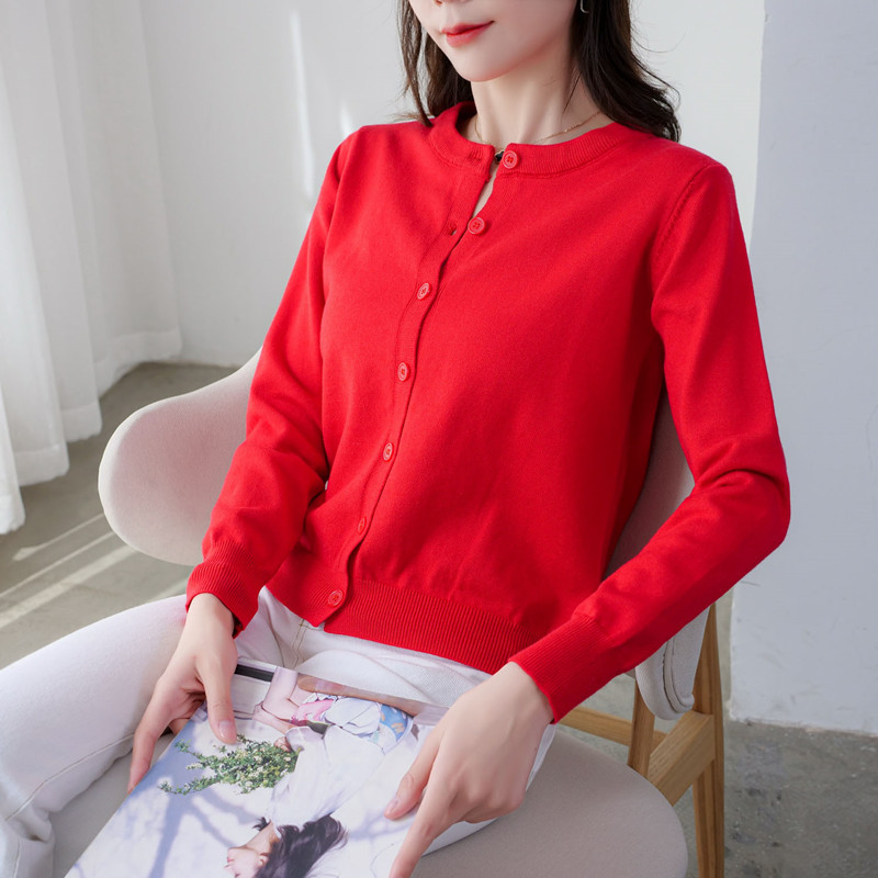 니트 라운드 넥 카디건 여성용 스웨터 코트 이른 봄 이른 가을과 겨울 새로운 긴 소매 느슨한 한국 스타일 탑웨어 짧은
