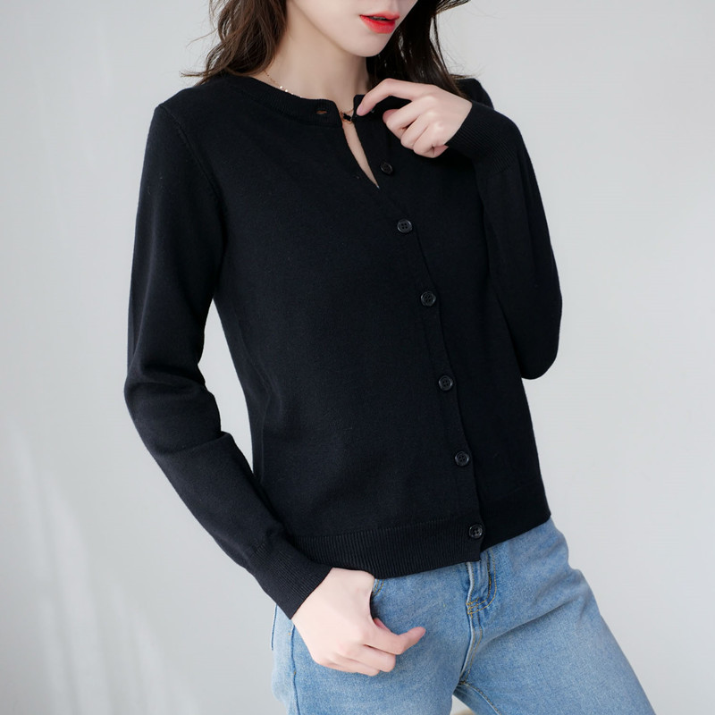 니트 라운드 넥 카디건 여성용 스웨터 코트 이른 봄 이른 가을과 겨울 새로운 긴 소매 느슨한 한국 스타일 탑웨어 짧은스토어 가기