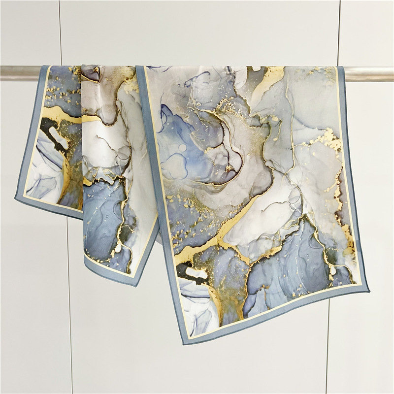 블루 골드 도금 실크 크레페 드 차인! 뽕나무 실크 스카프 여성용 봄과 여름 한국 스타일 기질 모든 매치 장식 작은 긴 스카프