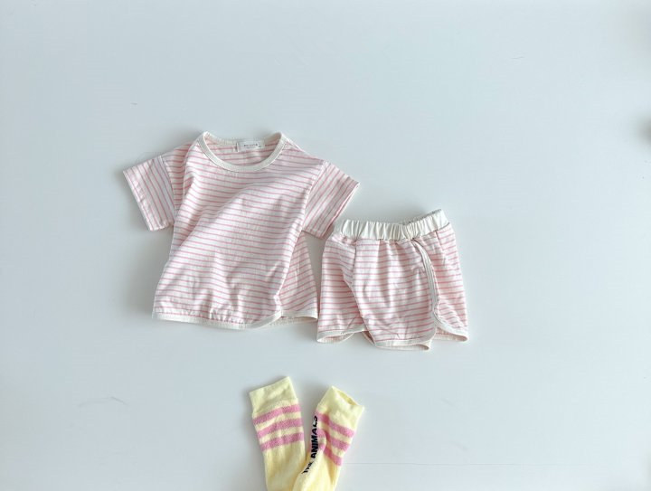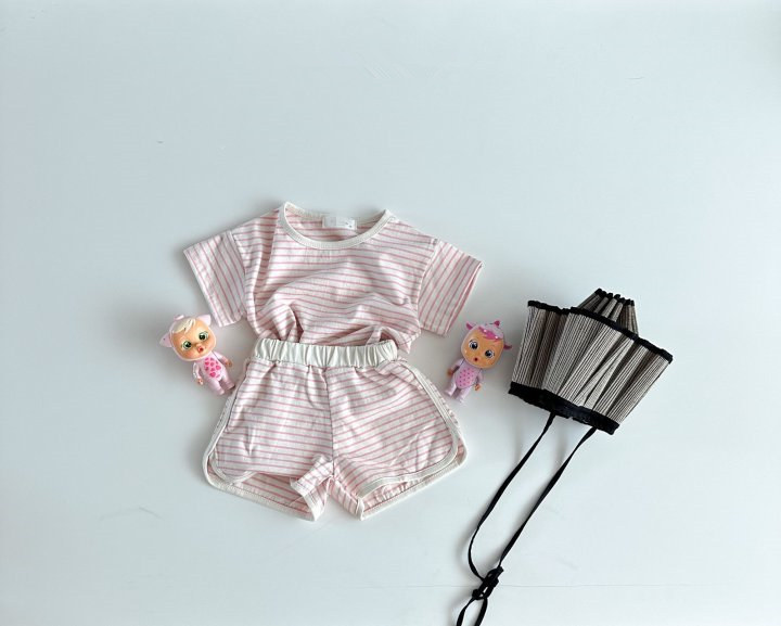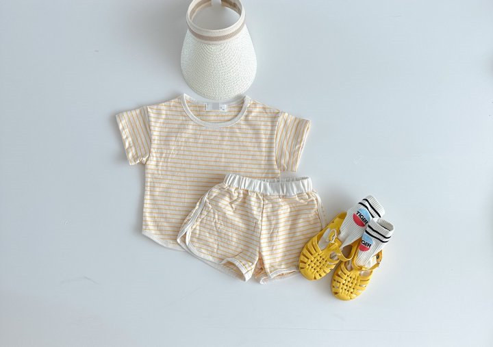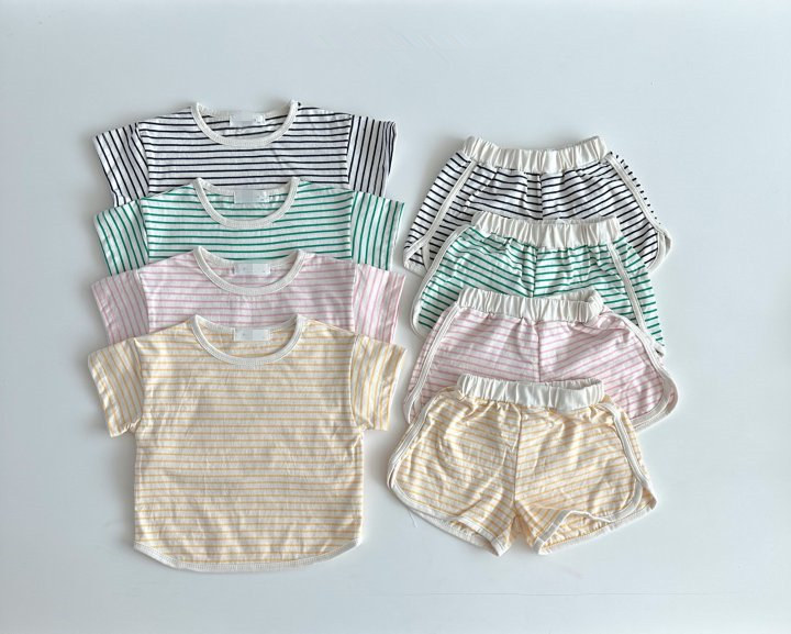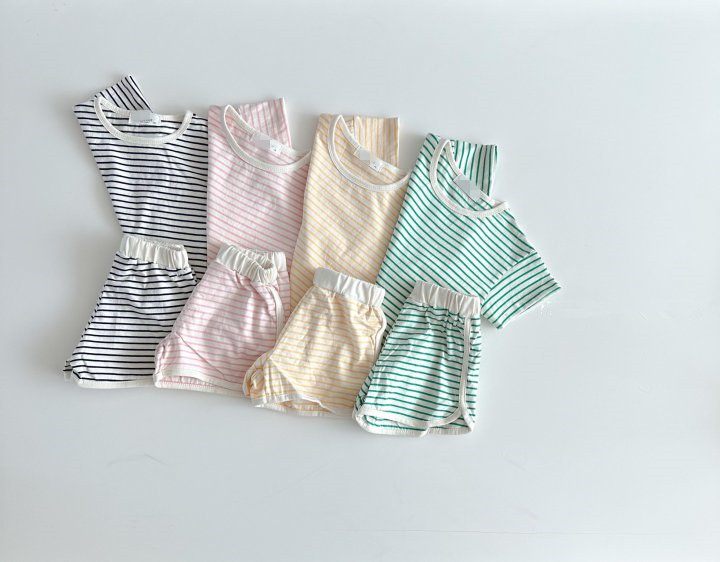 2023 여름 한국 스타일 아기 소년과 소녀 스포츠 레저 세트 줄무늬 상쾌한 아기 가정 복장스토어 가기