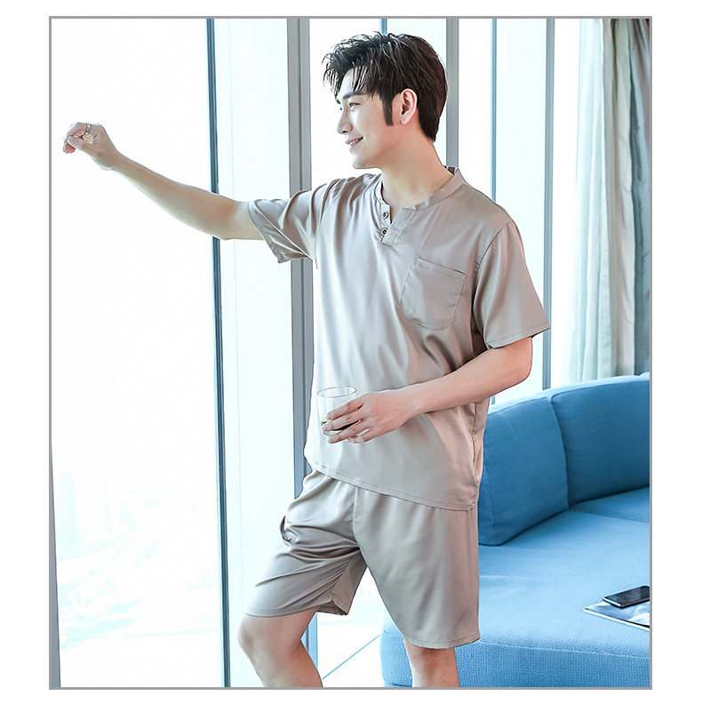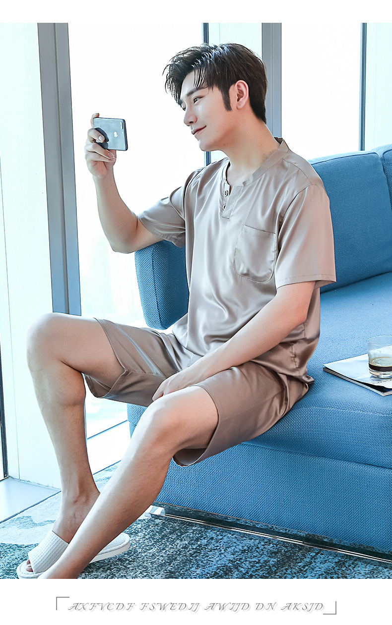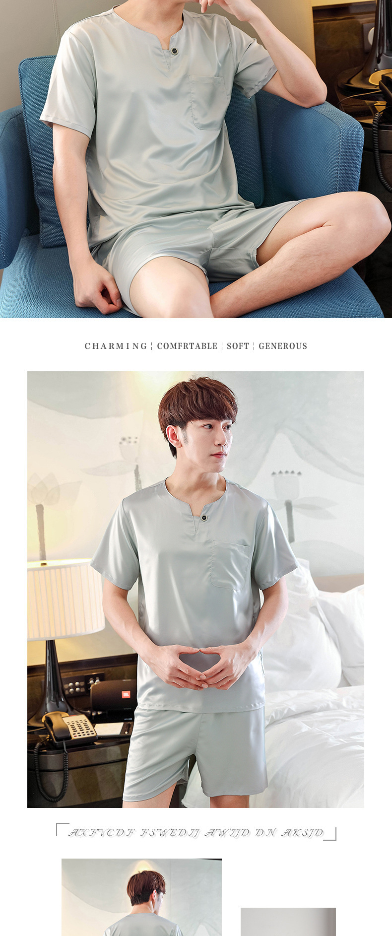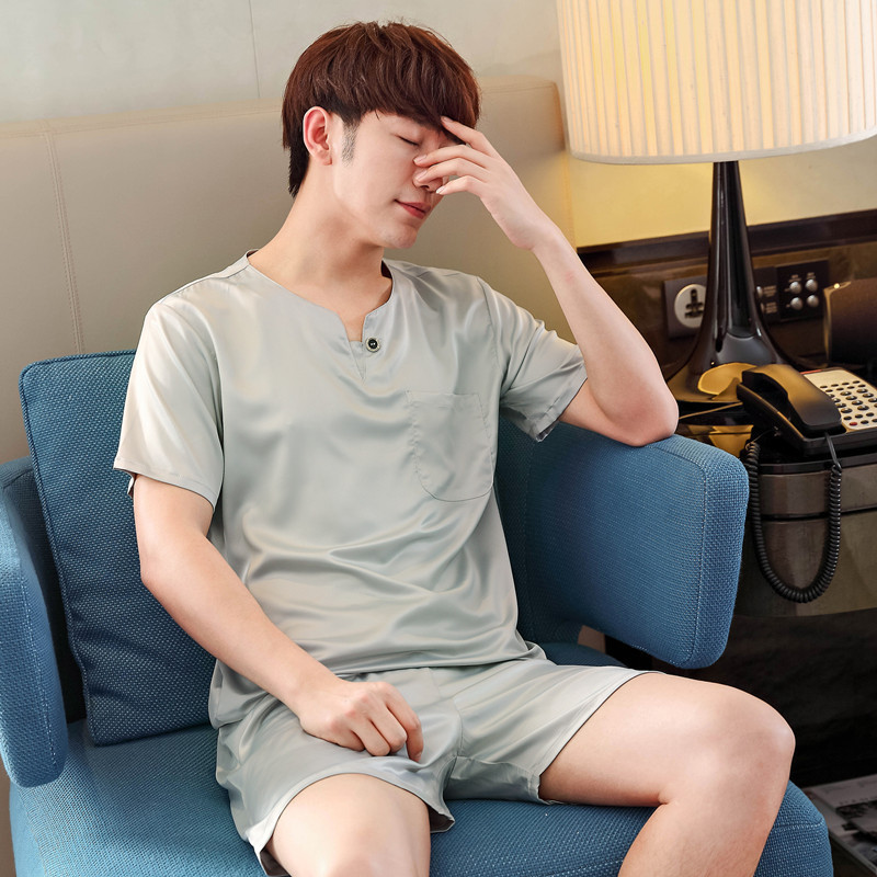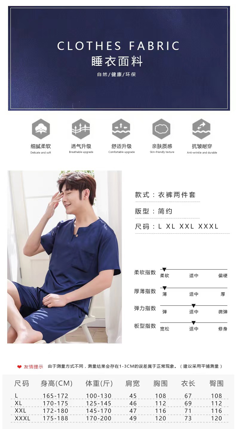 남자의 여름 얇은 얼음 실크 잠옷 반팔 반바지 살찐 플러스 사이즈 잠옷 세트 겉옷 가정 옷스토어 가기