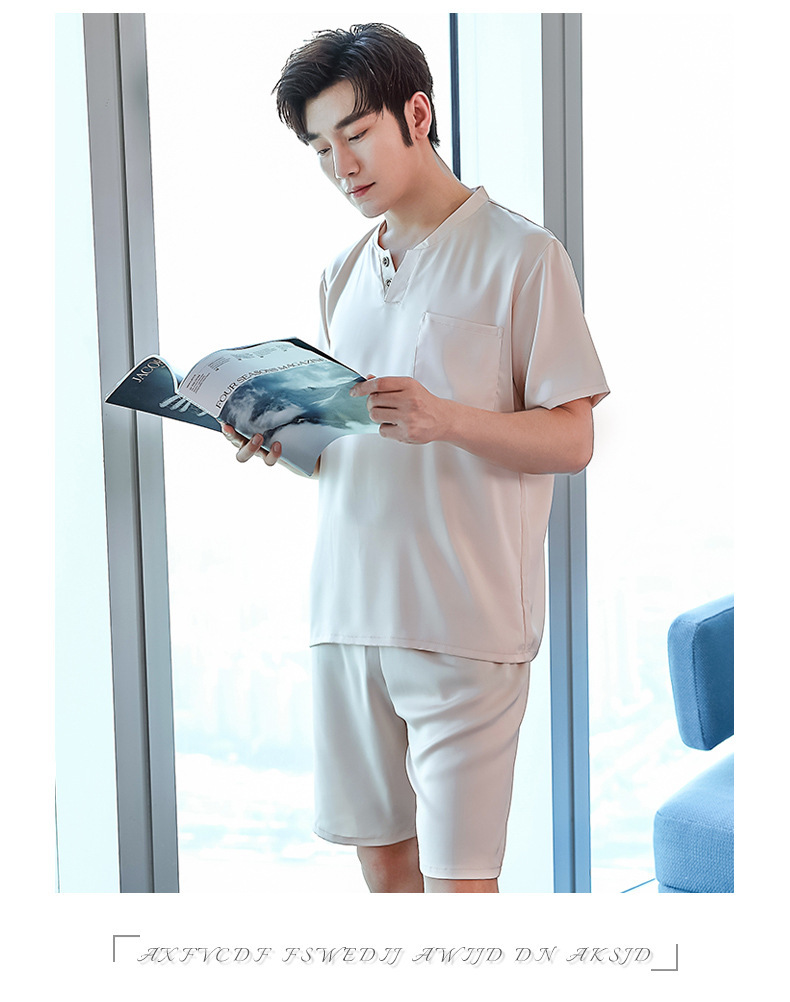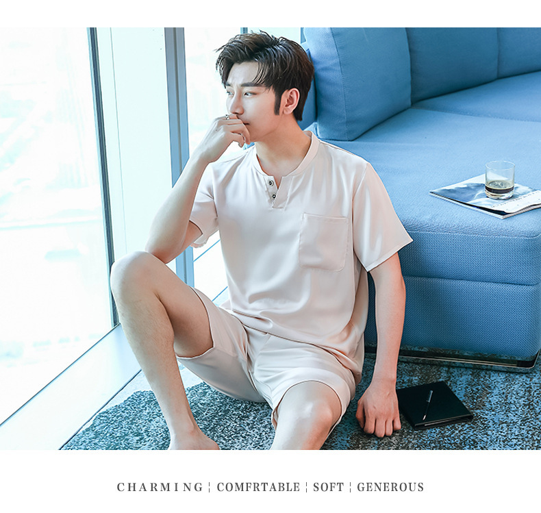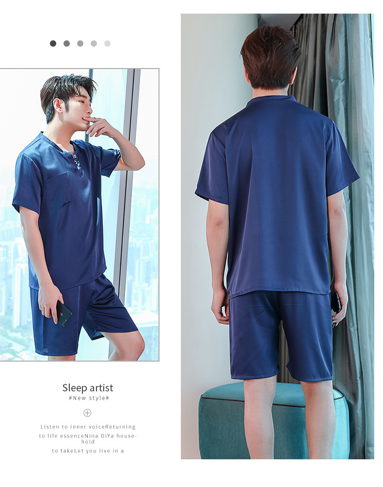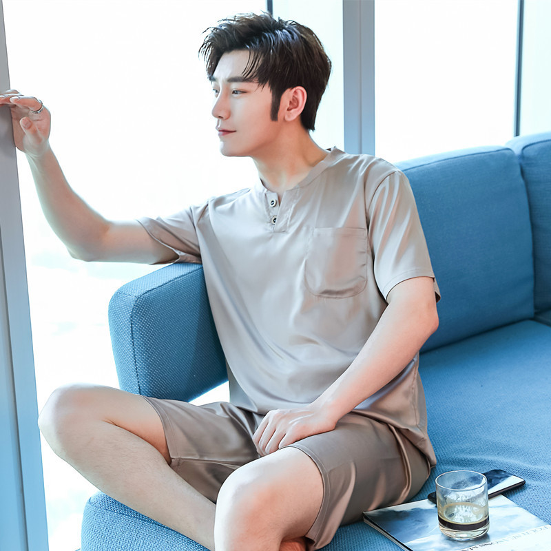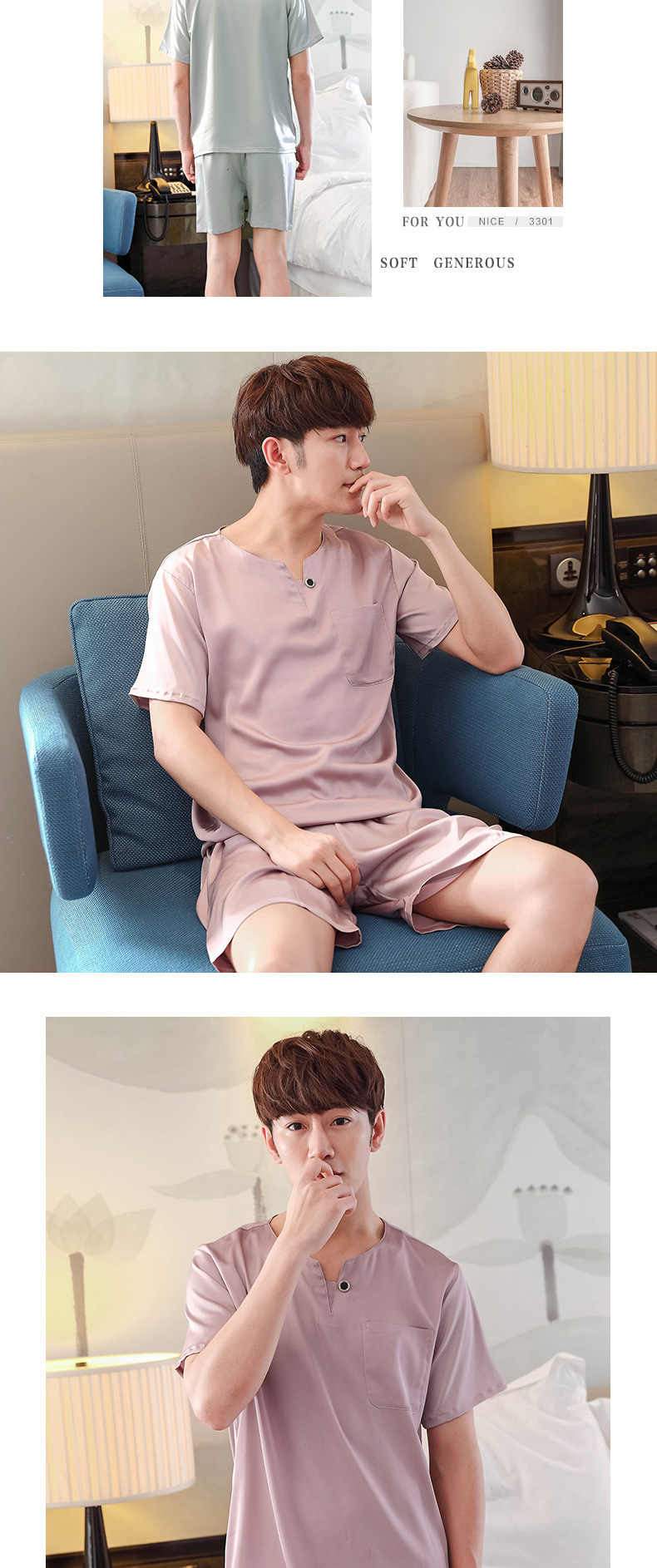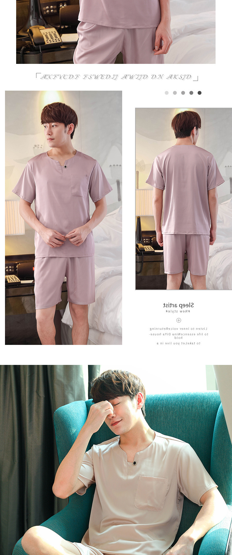 남자의 여름 얇은 얼음 실크 잠옷 반팔 반바지 살찐 플러스 사이즈 잠옷 세트 겉옷 가정 옷스토어 가기