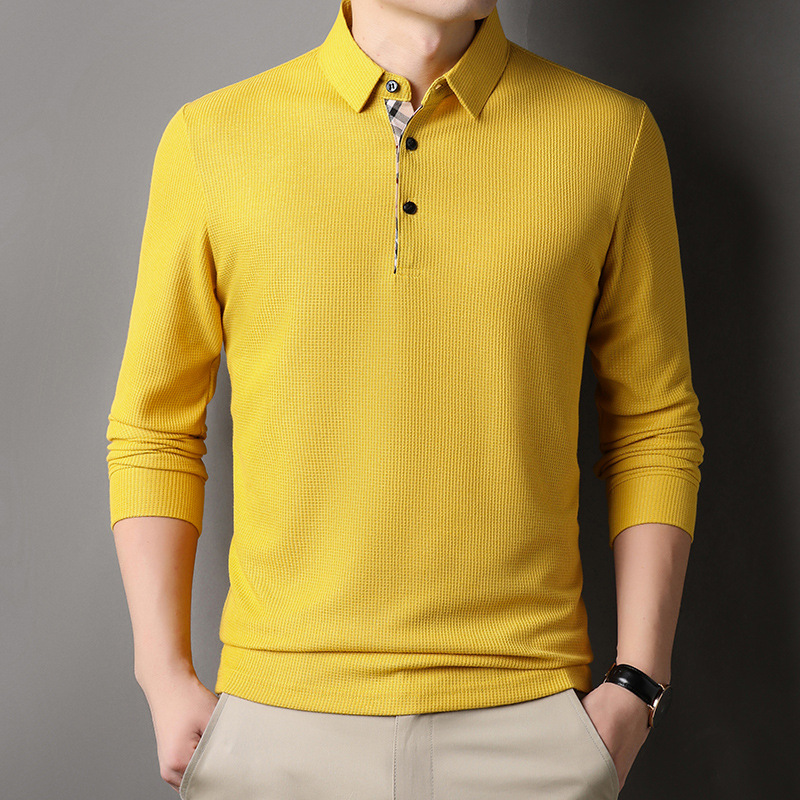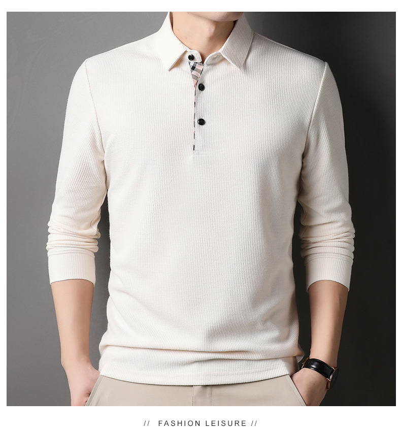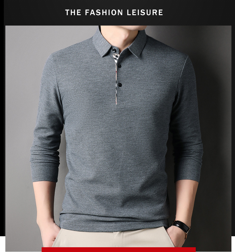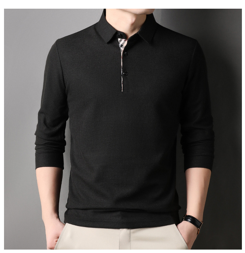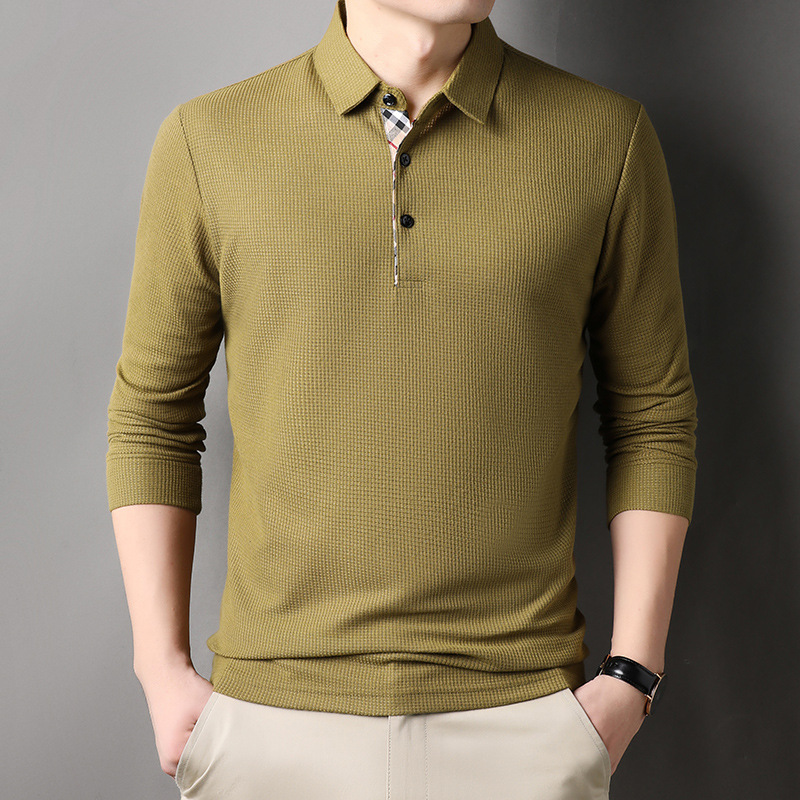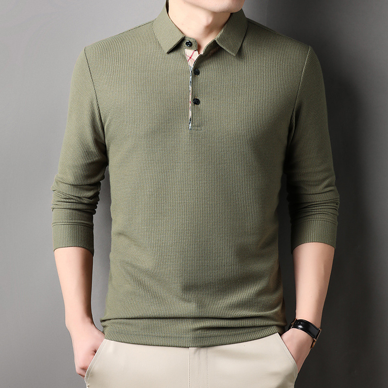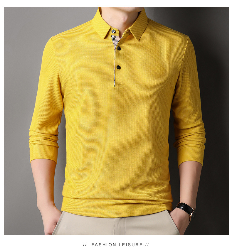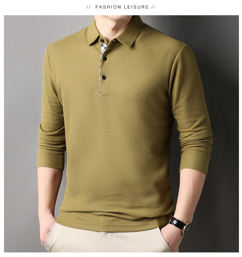긴팔 티셔츠 남성용 한국식 패션 캐주얼 라펠 폴로 셔츠 와플 남성 티셔츠