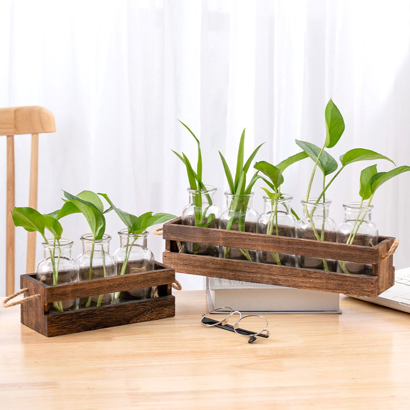 유럽과 미국 스타일 수경 꽃병 로그 탄소 베이킹 테스트 튜브 유리 말린 꽃 녹색 식물 나무 선반 장식 녹색 장미 식물