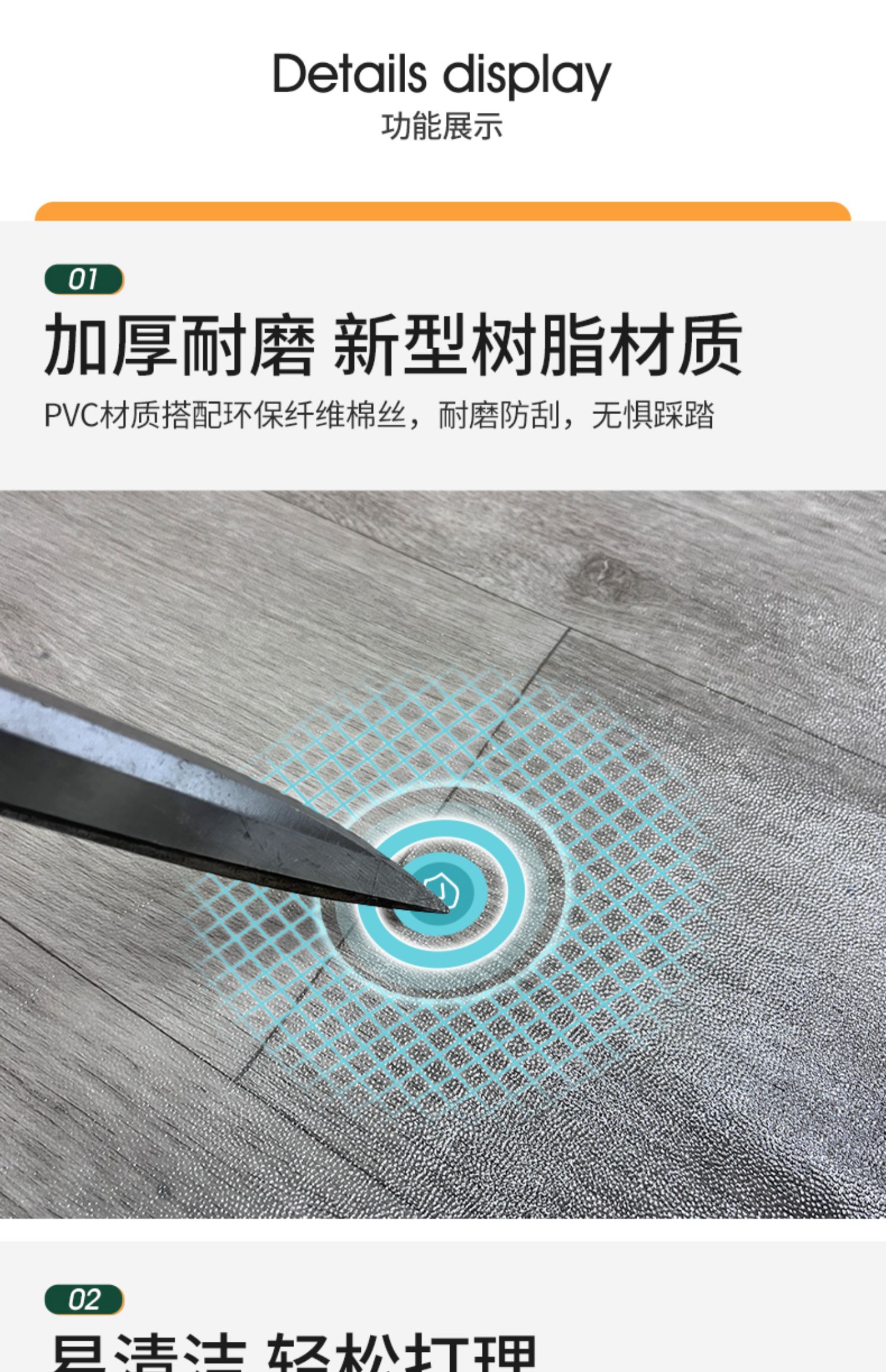 바닥 가죽 가정용 시멘트 바닥 직접 배치 두꺼운 내마모성 방수 타일 PVC 플라스틱 매트 바닥 스티커 자체 접착스토어 가기