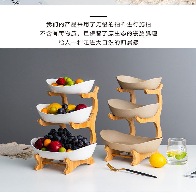 창조적 인 3 층 다층 과일 접시 유럽식 세라믹 말린 과일 접시 대나무 나무 선반 가정용 간식 접시 캔디 트레이 과일 바구니