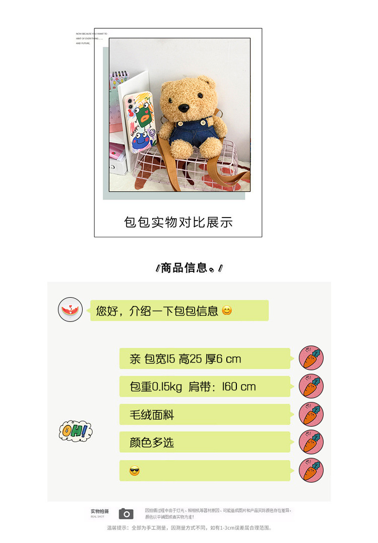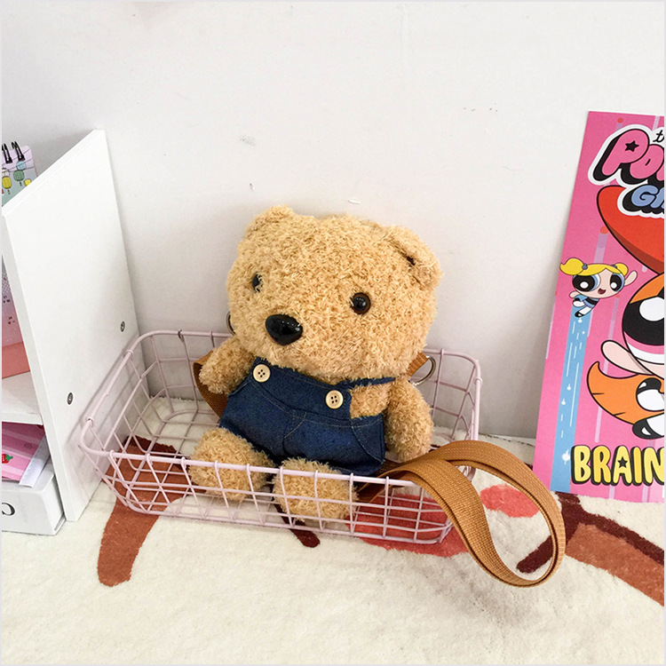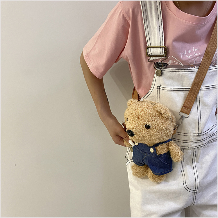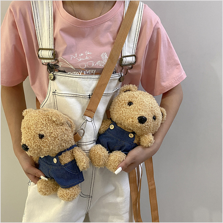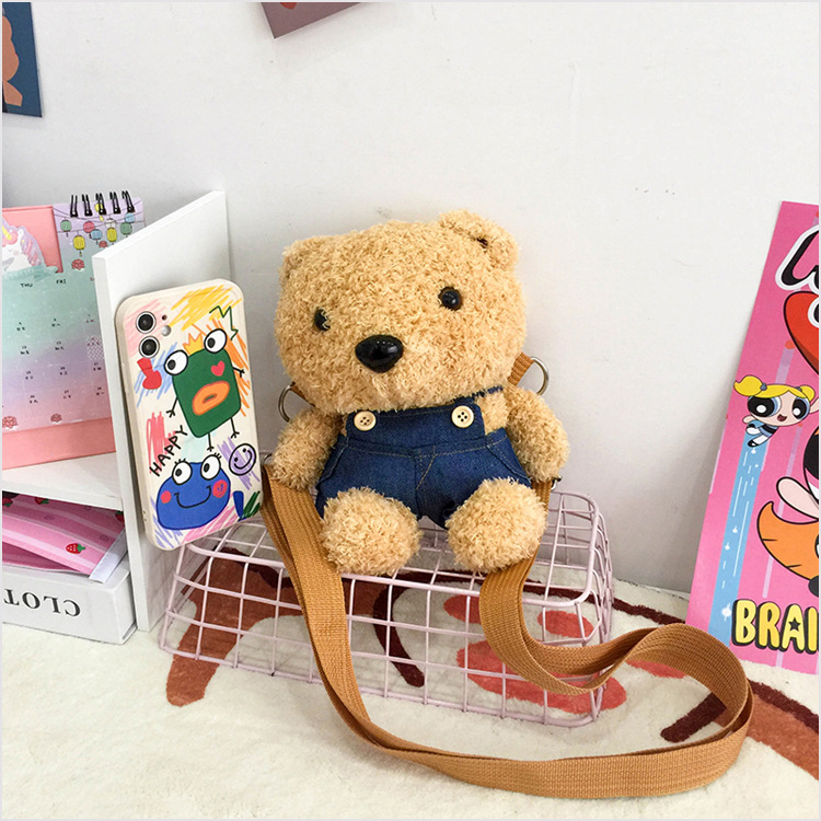 2024 가을과 겨울 봉제 어린이 가방 귀여운 곰 미니 아기 동전 지갑 소녀 부모-어린이 어깨 크로스 백스토어 가기