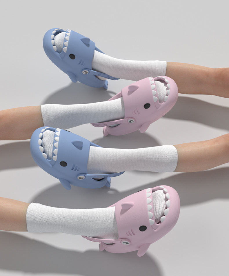 만화 캐릭터 야외 커플용 통굽 슬리퍼, 두꺼운 밑창, 미끄럼 방지, 남성용 슬리퍼, 편리한 사무실용 샤크 샌들, 여성용 내구성 좋은 슬리퍼스토어 가기