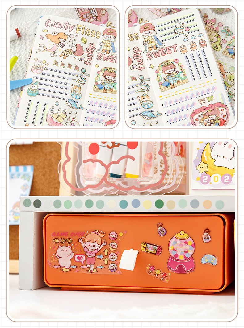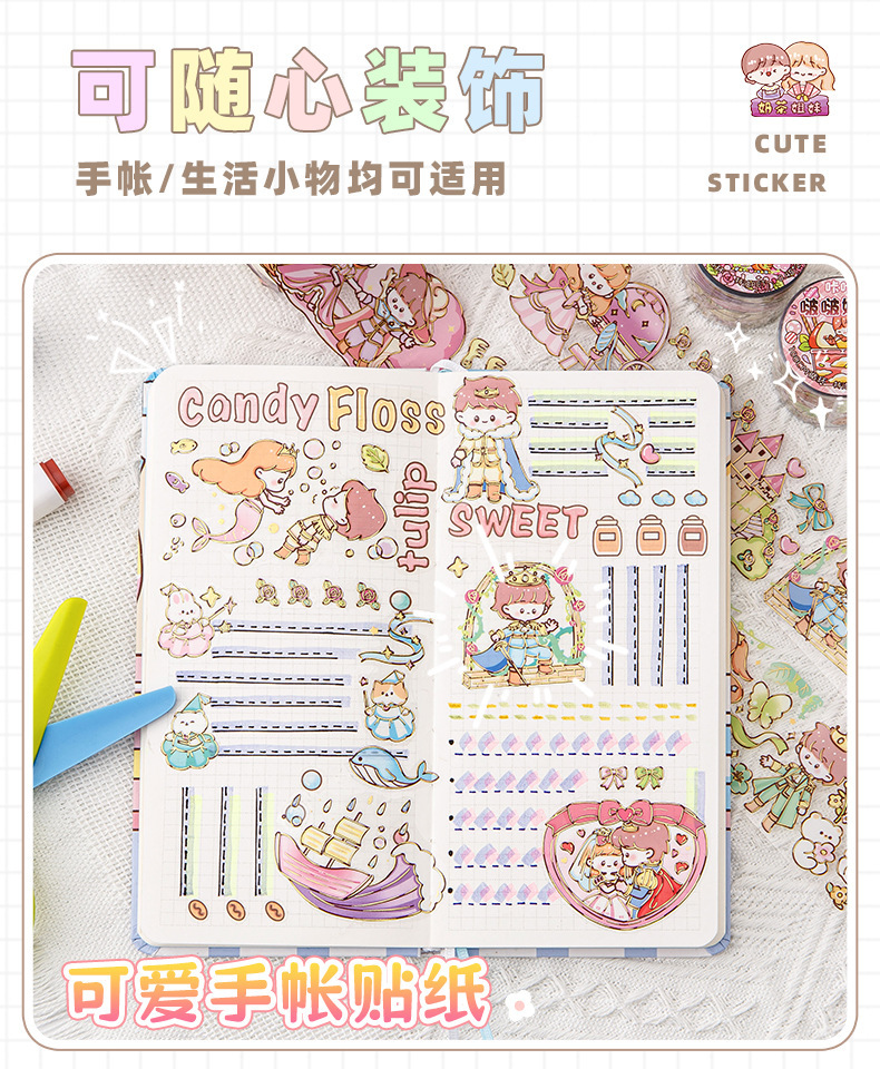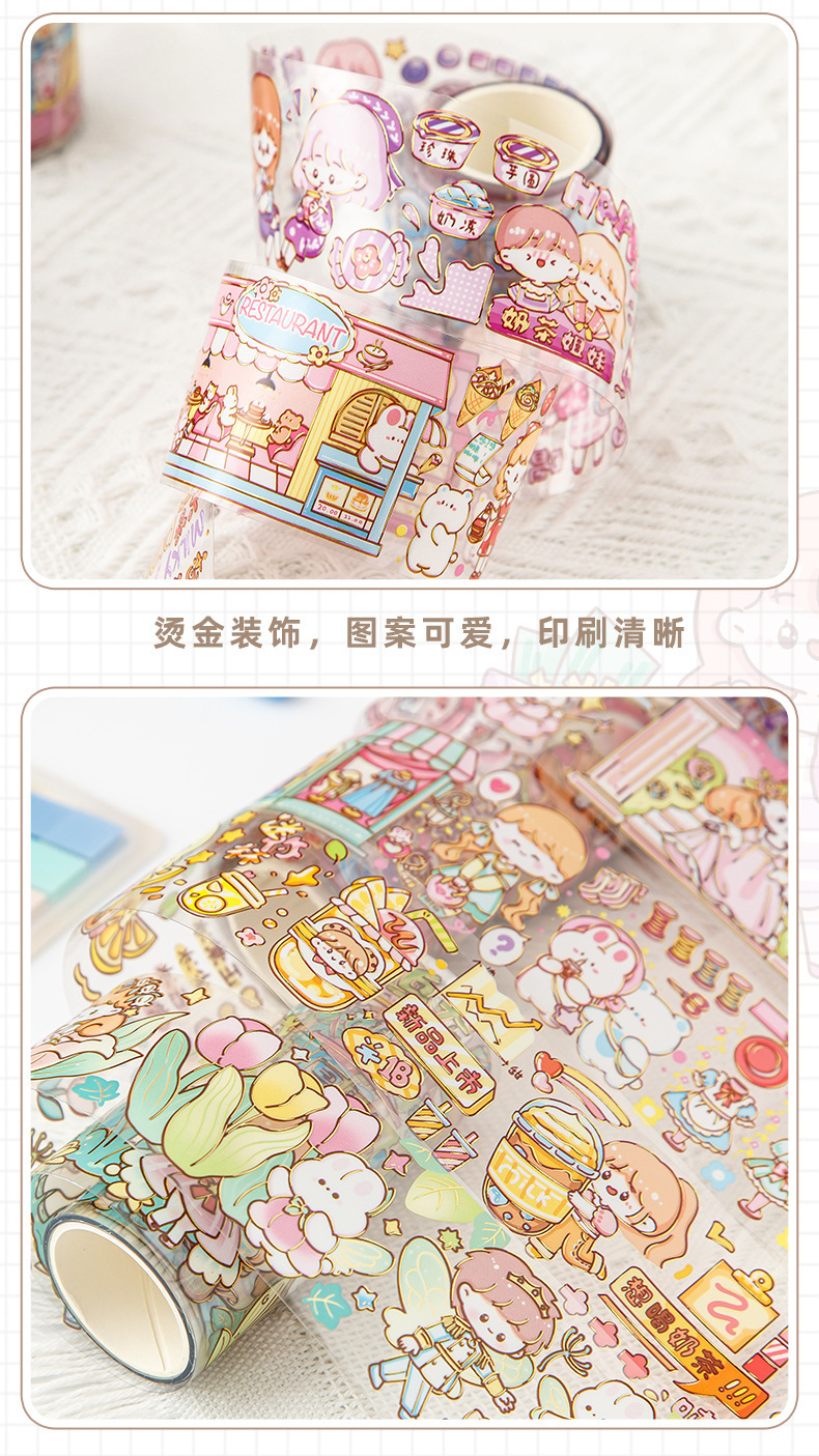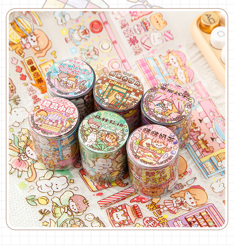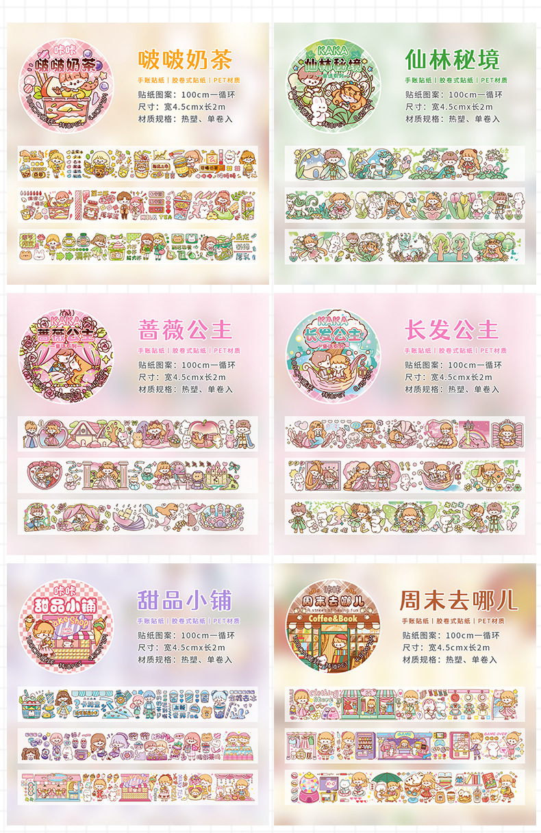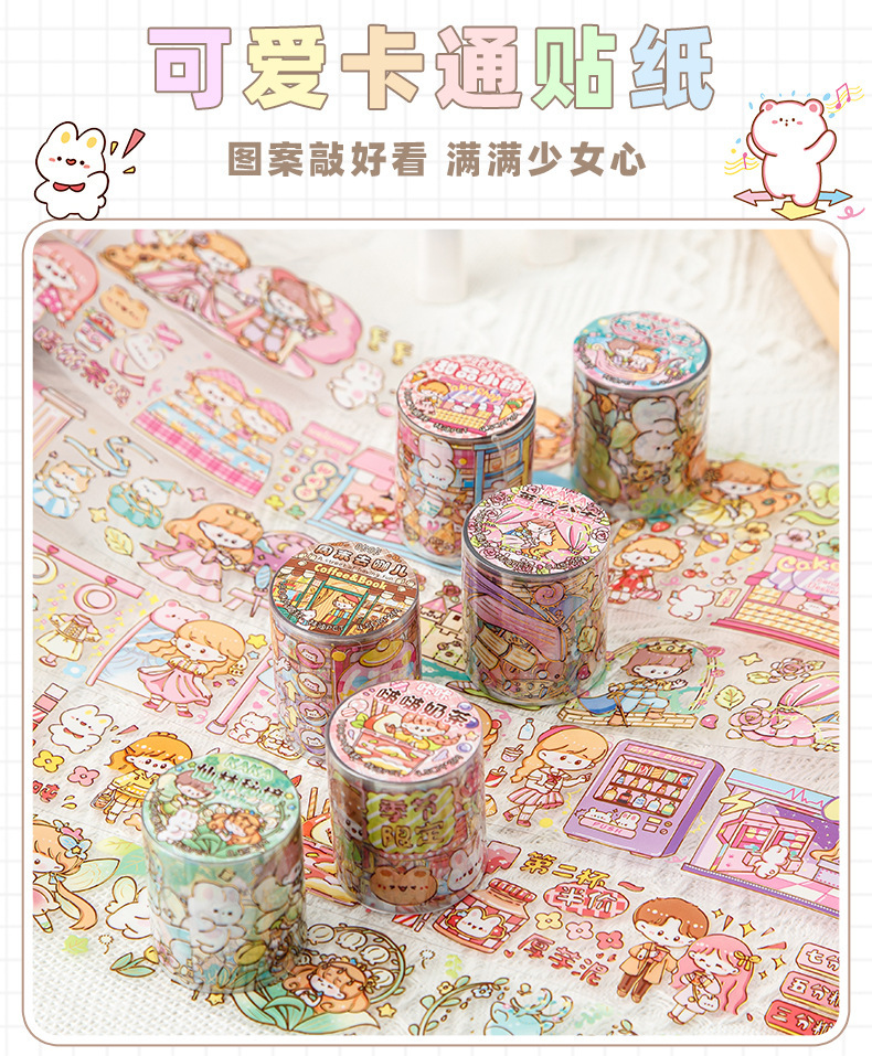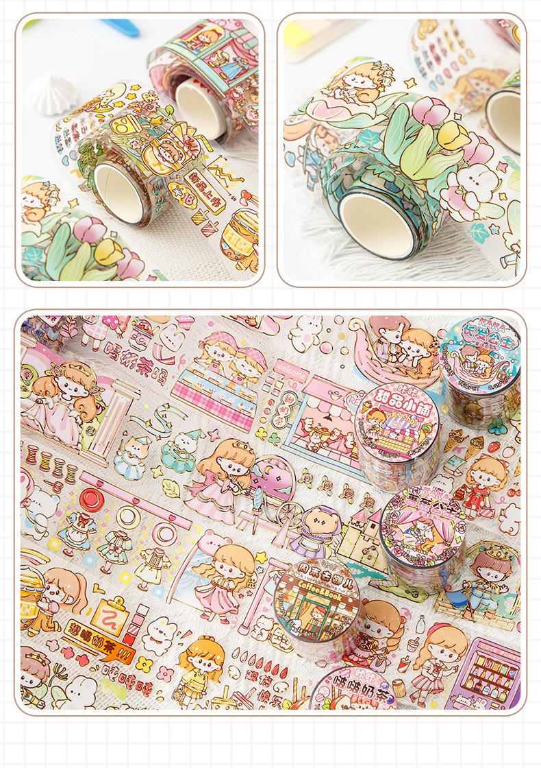 T 핸드 계정 테이프 PET 방수 핸드 계정 스티커 소녀 귀여운 캐릭터 만화 핸드 계정 재료 장식 및 종이 필름스토어 가기