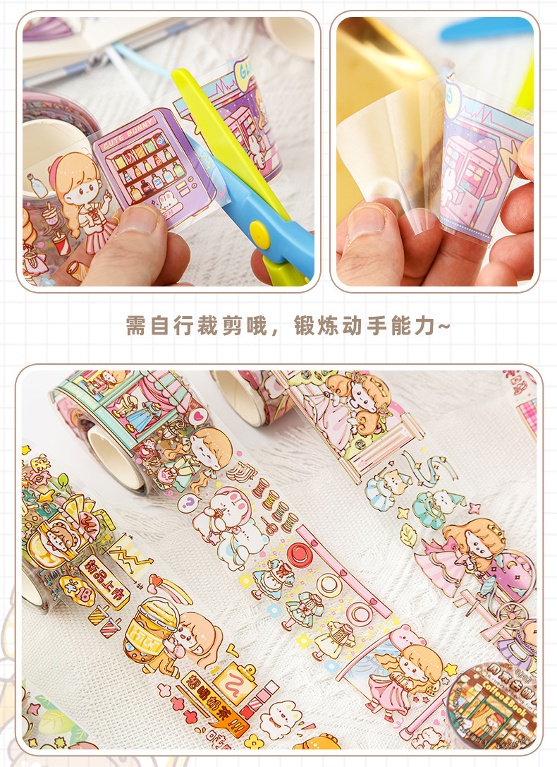 T 핸드 계정 테이프 PET 방수 핸드 계정 스티커 소녀 귀여운 캐릭터 만화 핸드 계정 재료 장식 및 종이 필름