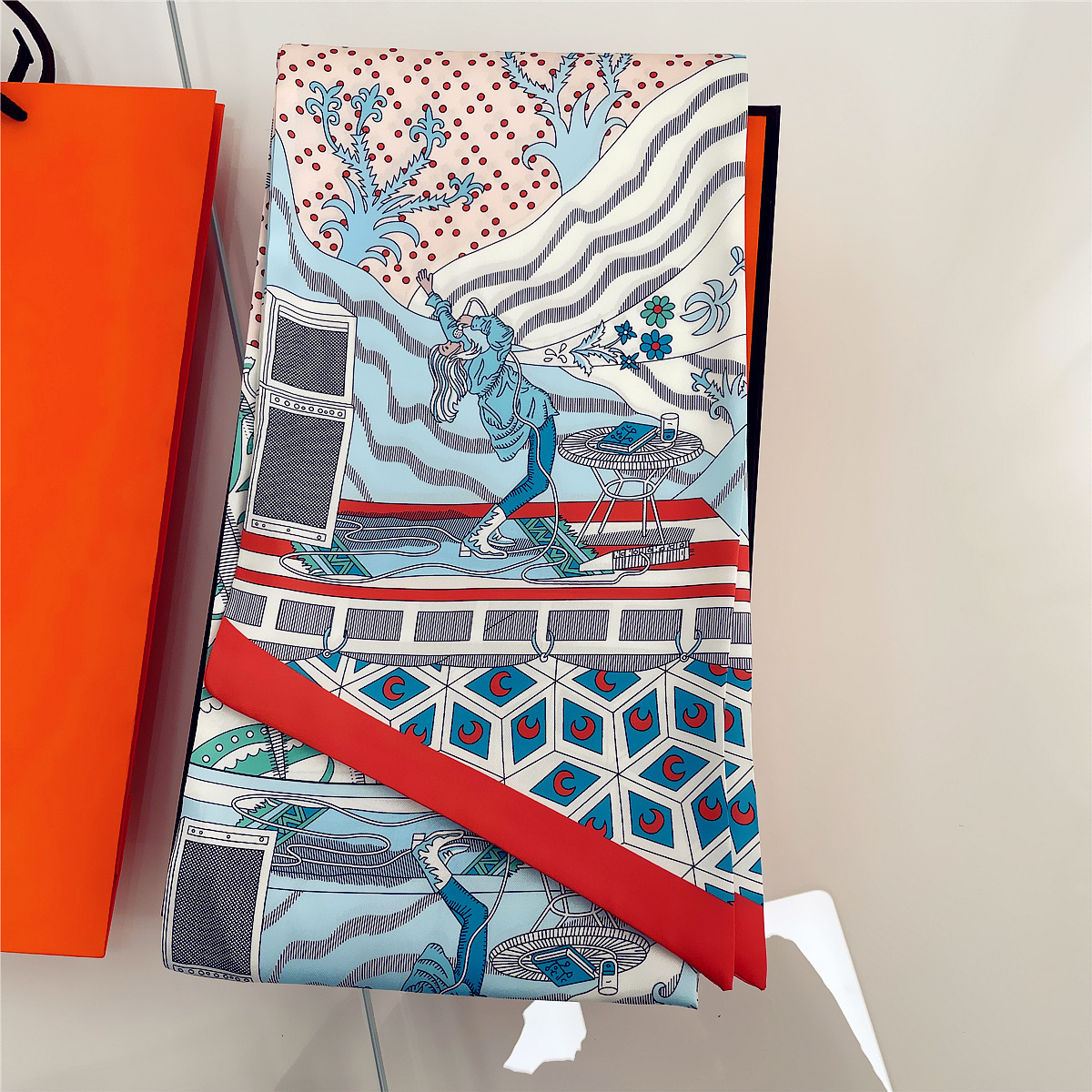 인터넷 연예인 라이브 방송 봄과 가을 새틴 리본 긴 작은 스카프 스카프 여성용 긴 스카프 여성용 터번 타이 하이 엔드스토어 가기