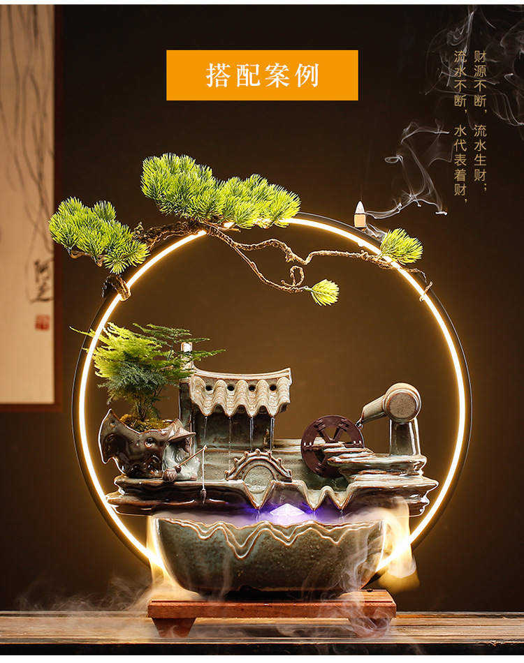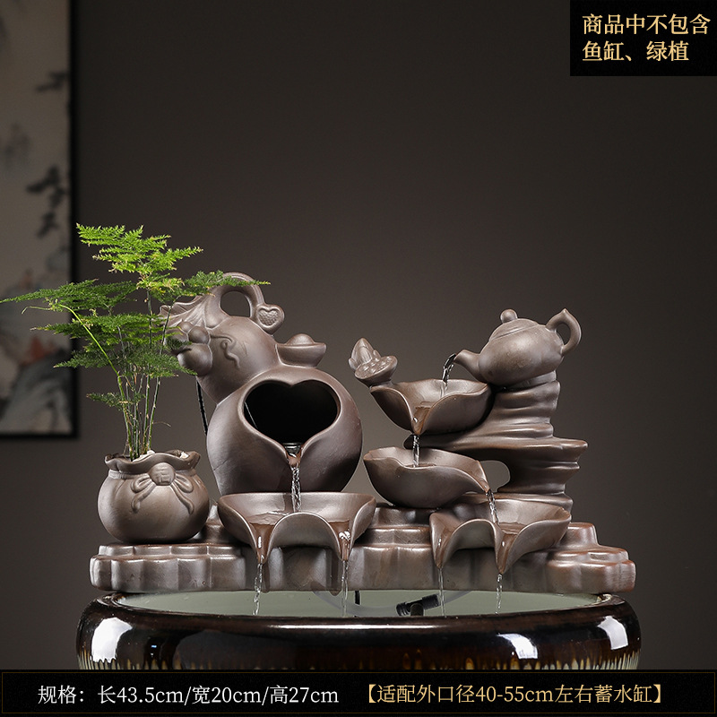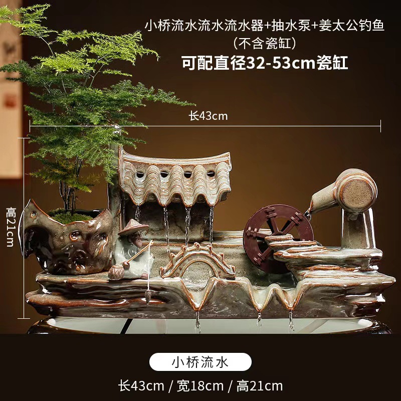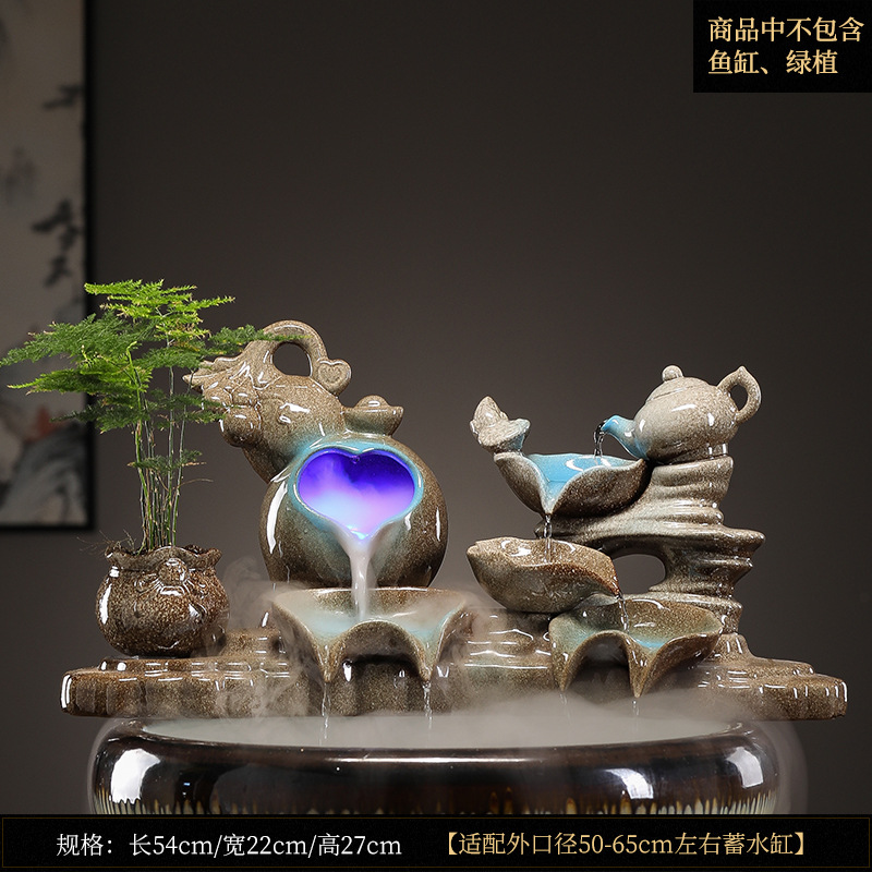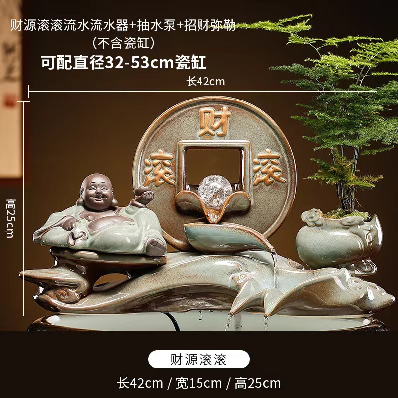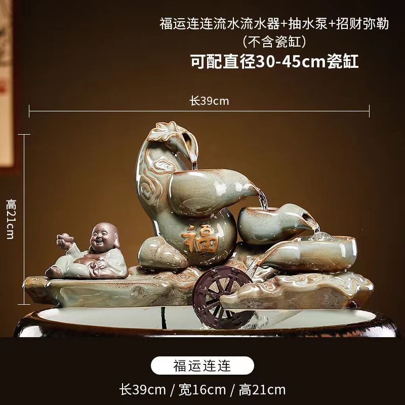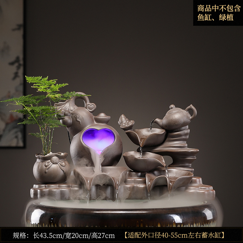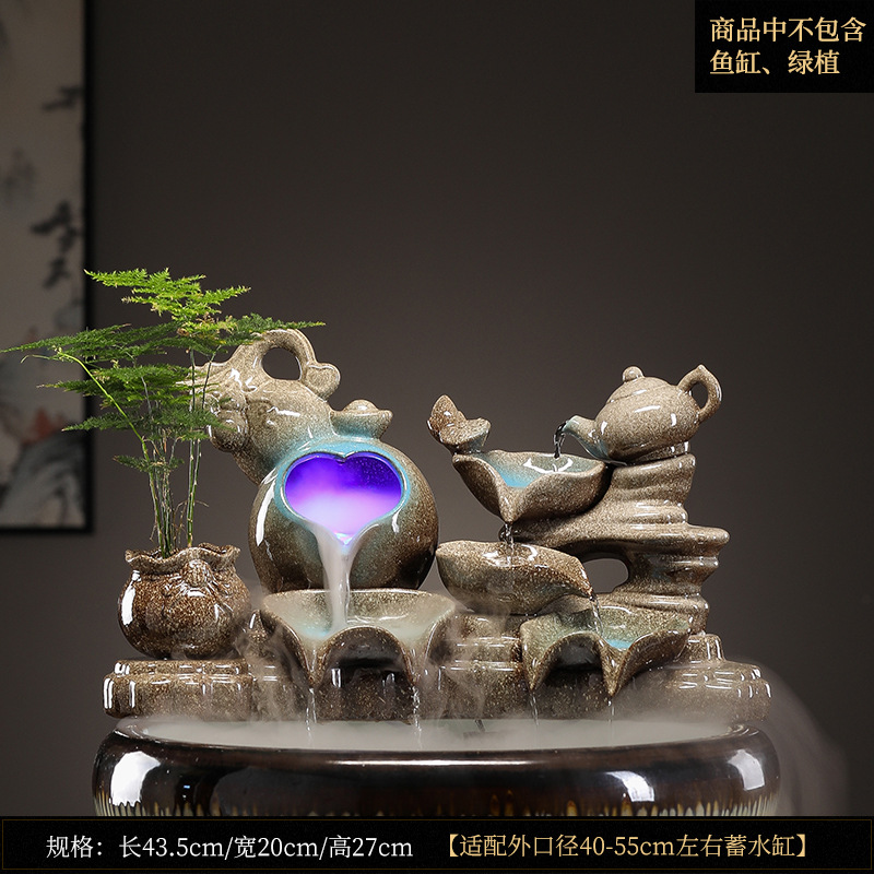 • [대형 도자기 색상] Fulu Shuangquan + 분무기 + (분지 제외 - 5w 워터 펌프 포함)