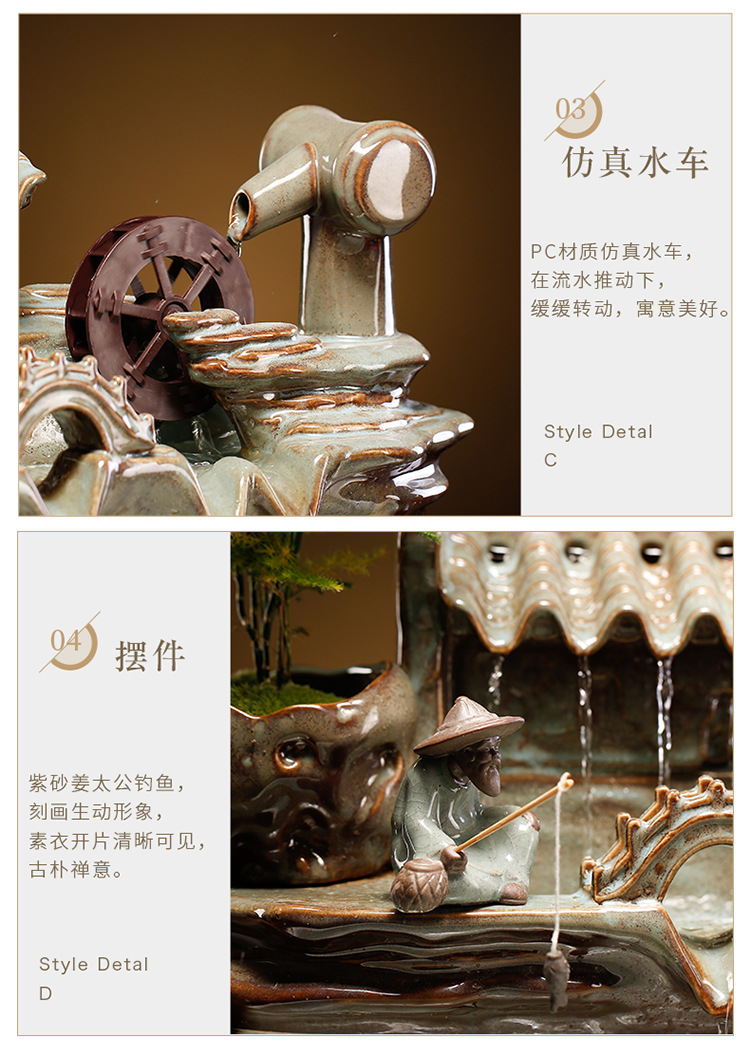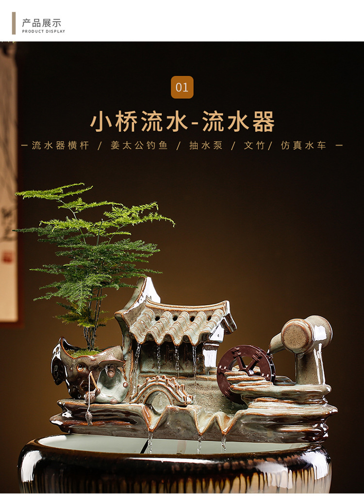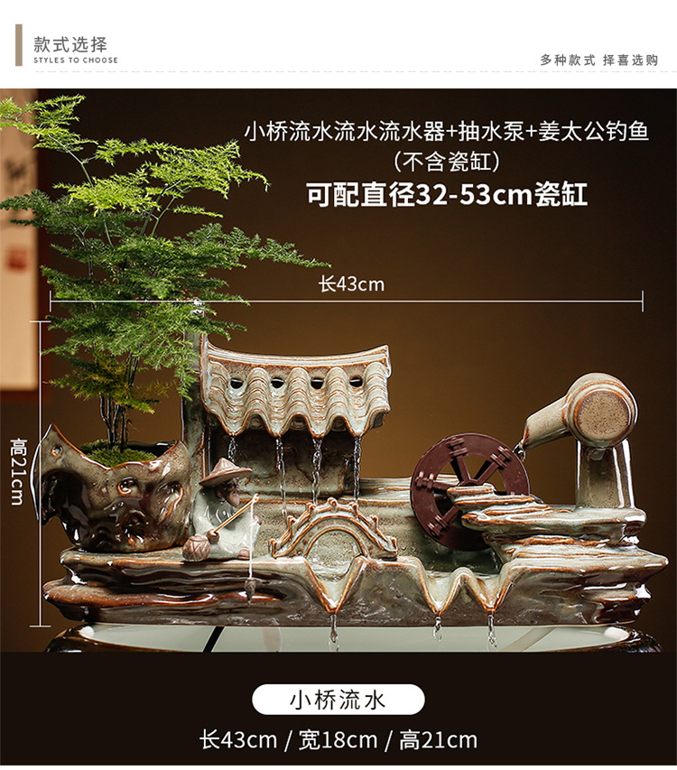 새로운 중국 선 일치하는 세라믹 물고기 탱크 순환 물 배출 장식 가습 조경 액세서리 분수스토어 가기