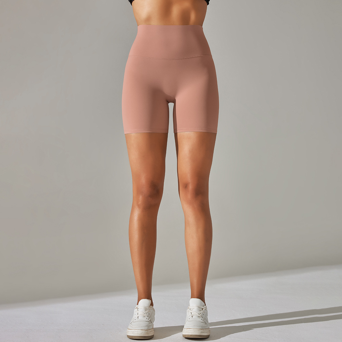 국경을 넘나드는 유럽과 미국의 새로운 스타일의 여성용 누드 요가 반바지, 양면 기모 타이트 스트레치 스포츠 3점 바지, 복숭아 엉덩이