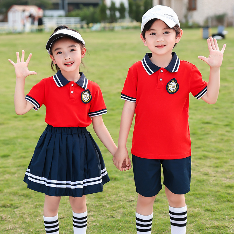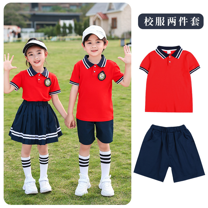 유치원 의류 여름 초등학교 교복 공연 수업 의류 면 세트 반팔 대학 스타일 공연 의류 도매스토어 가기