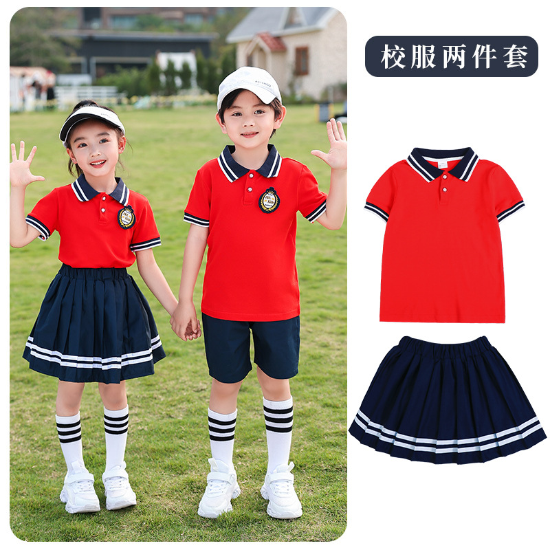 유치원 의류 여름 초등학교 교복 공연 수업 의류 면 세트 반팔 대학 스타일 공연 의류 도매