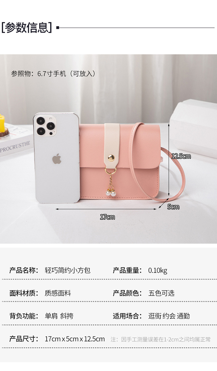 2024 여성용 스몰백, 데일리로 활용도 높은 봄 여름 여성용 가방, 배색 스몰 스퀘어백, 진주 장식 가방, 핸드폰 가방, 크로스백