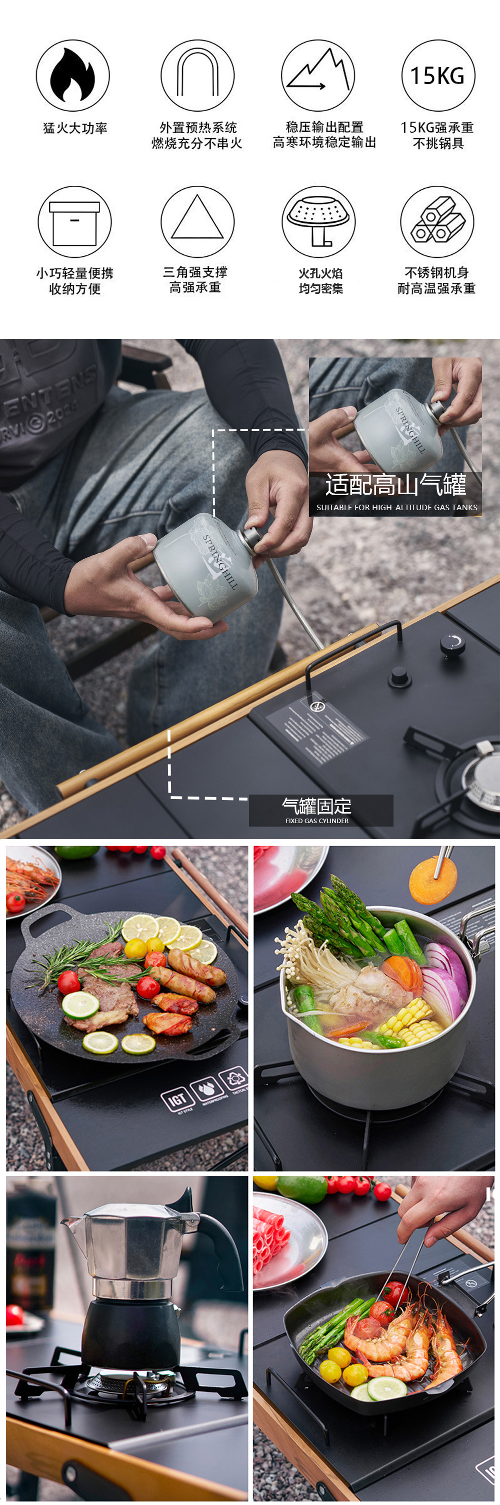 IGT 스토브 야외 가스 스토브 휴대용 모바일 스토브 바베큐 스토브 캠핑 야외 스토브 데스크탑 지원 스토브