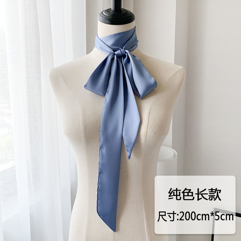 슈퍼 롱 2 m 단색 얇은 좁은 롱 스카프 여성용 모든 매치 작은 스카프 장식 헤어 밴드 리본 넥타이 새틴 리본