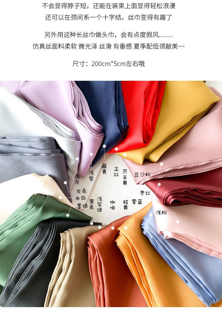 슈퍼 롱 2 m 단색 얇은 좁은 롱 스카프 여성용 모든 매치 작은 스카프 장식 헤어 밴드 리본 넥타이 새틴 리본스토어 가기