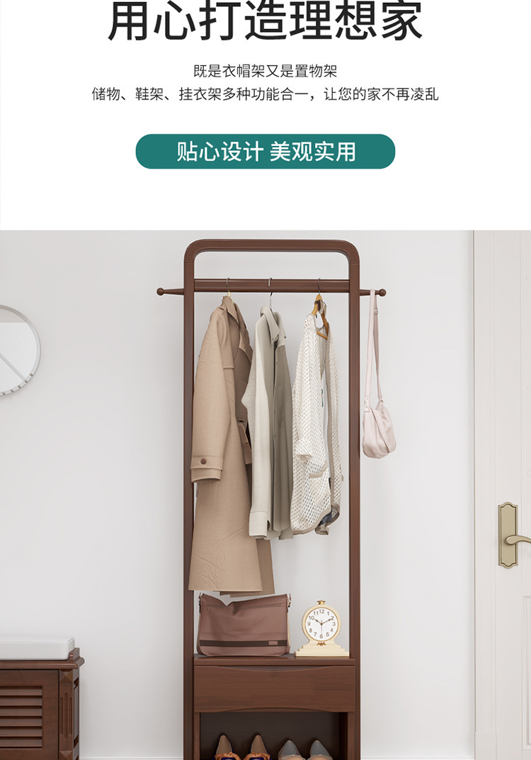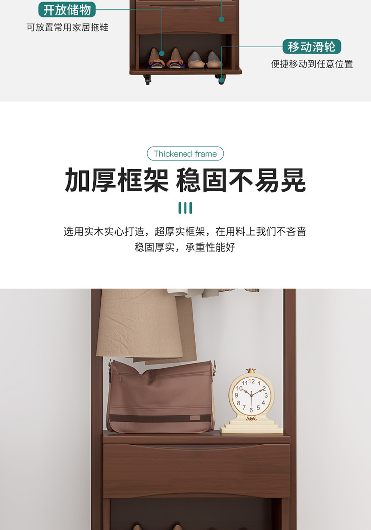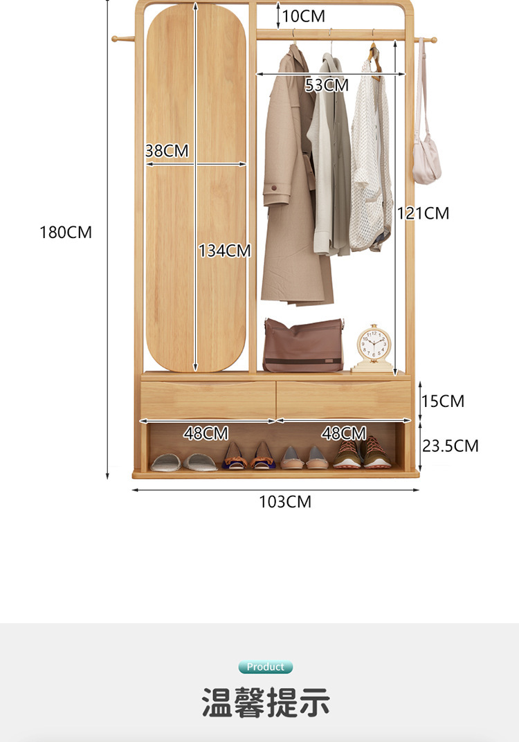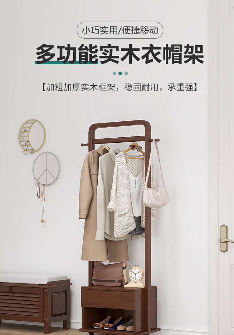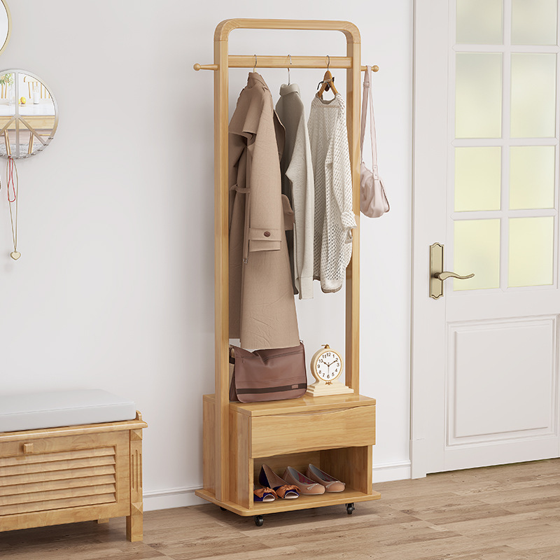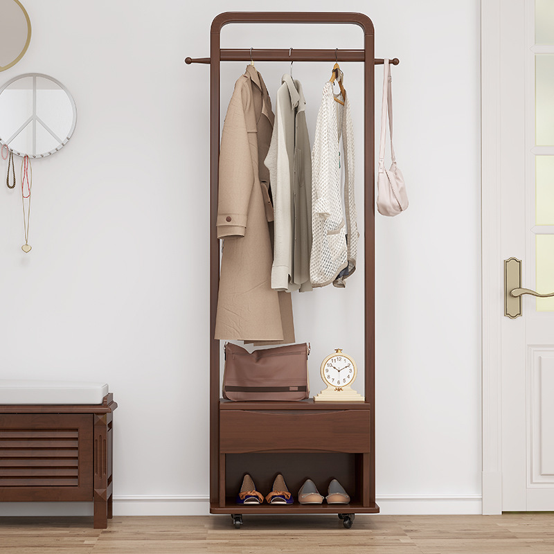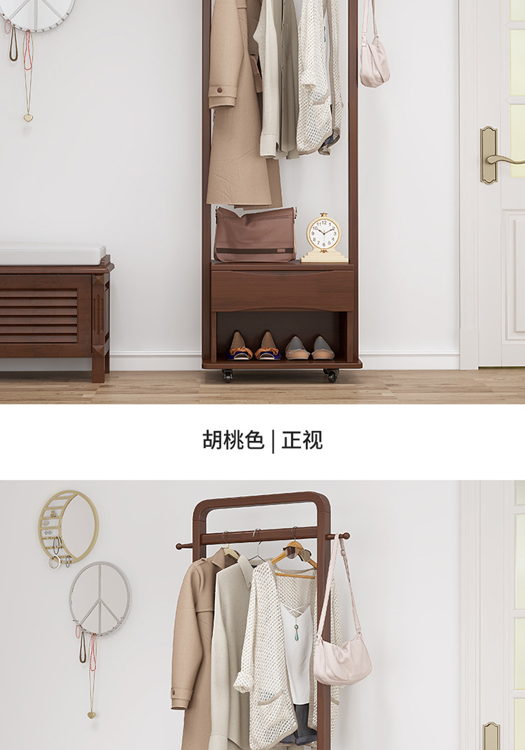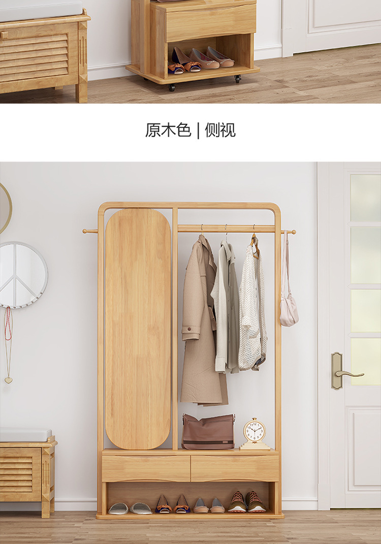 북유럽 스타일 단단한 나무 코트 랙 가정용 바닥 행거 랙 거울 이동식 행거 도매 침실스토어 가기