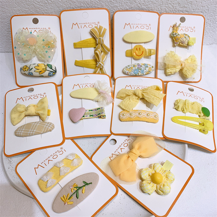새로운 노란색 어린이 활 머리핀 귀여운 소녀의 수 놓은 꽃 머리핀 앞머리 부러진 머리 BB 클립스토어 가기
